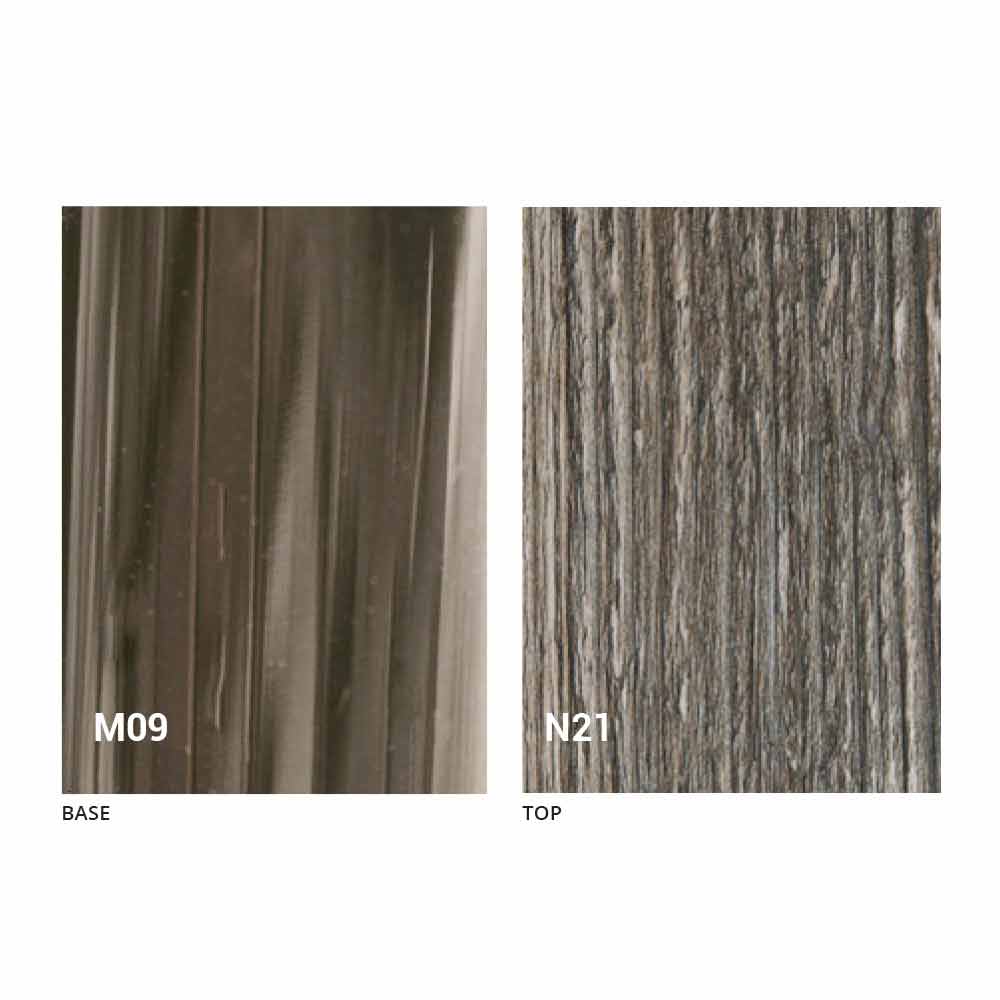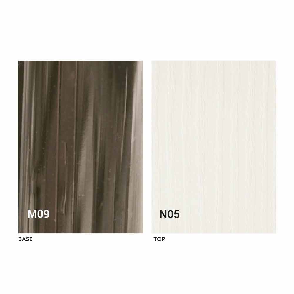 Het blad en de basis van de tafel kunnen worden aangepast met verschillende voorbeeldafwerkingen. Neem voor informatie contact met ons op via het daarvoor bestemde formulier "