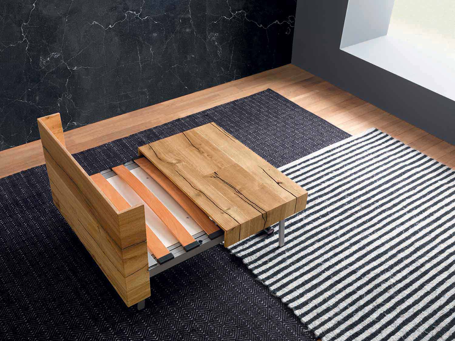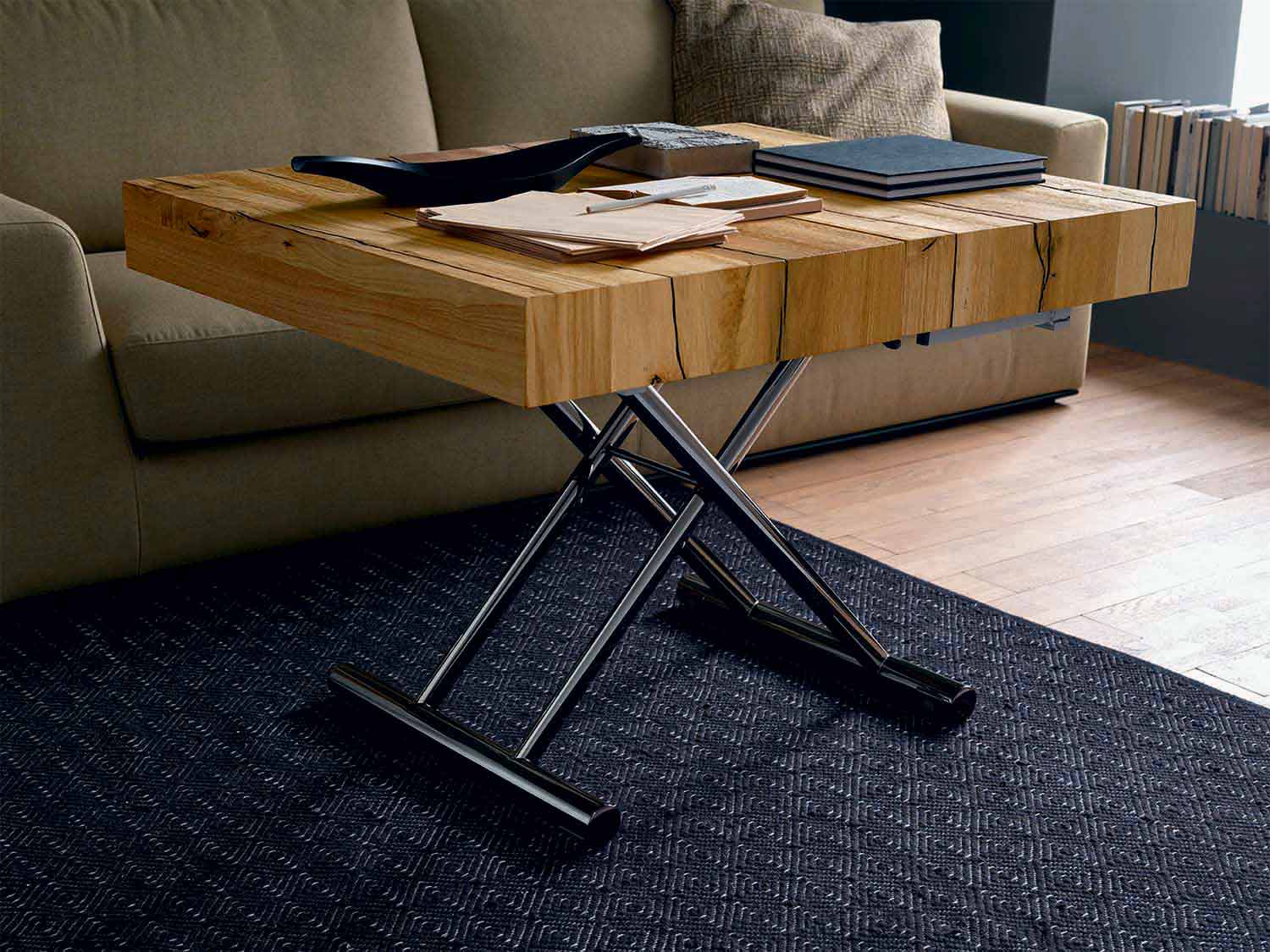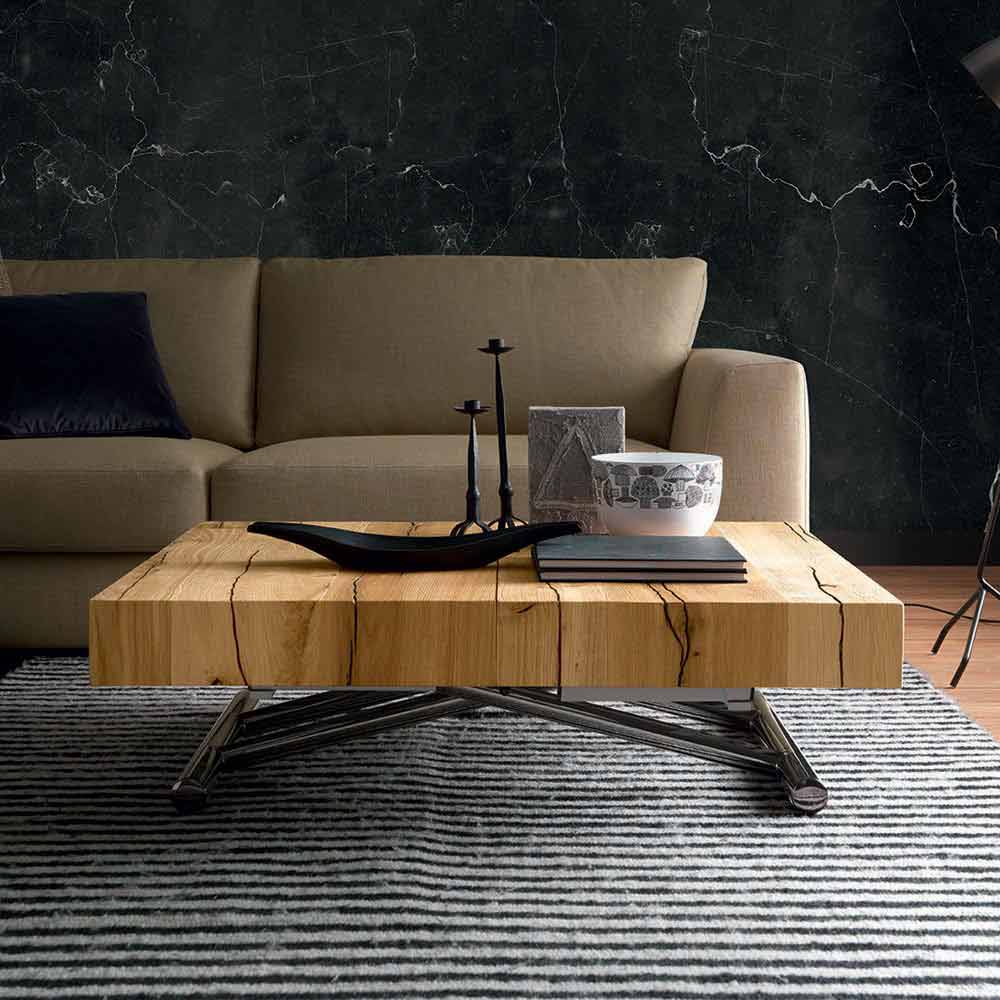 Moderne salontafel van massief hout en metaal, omvormbaar tot eettafel of bed Made in Italy.