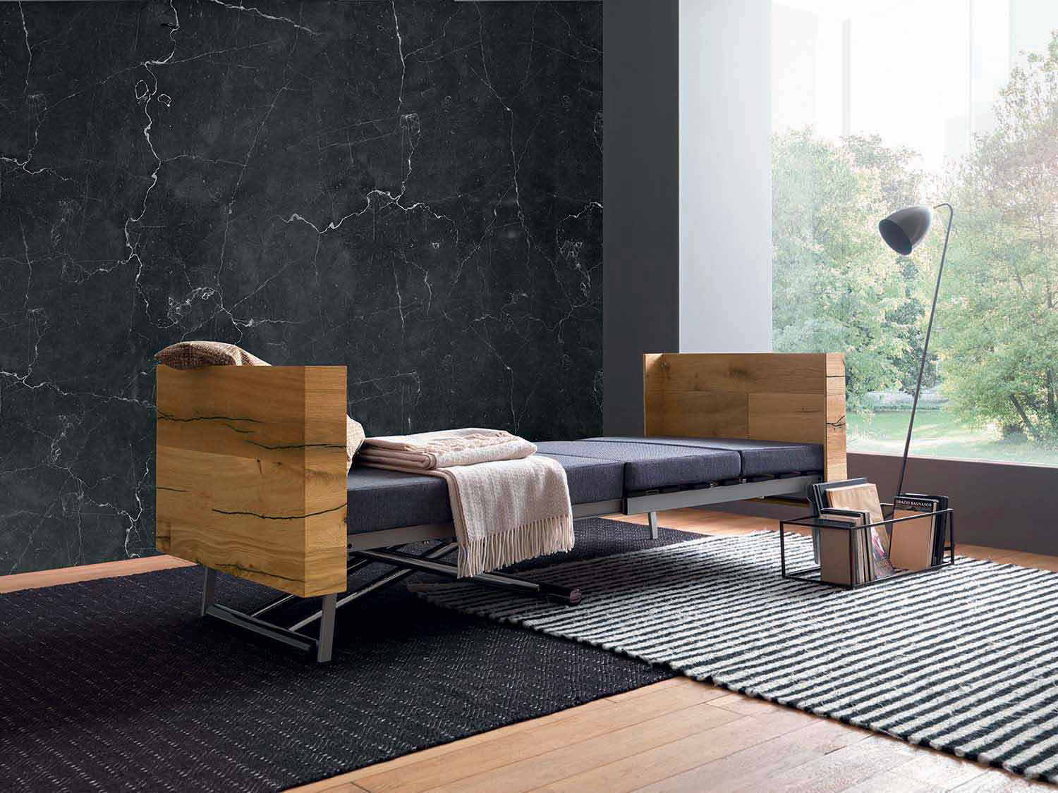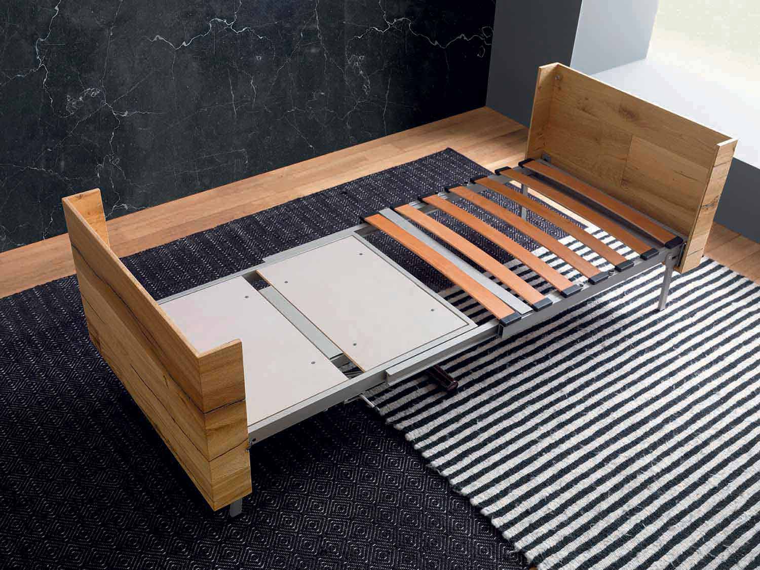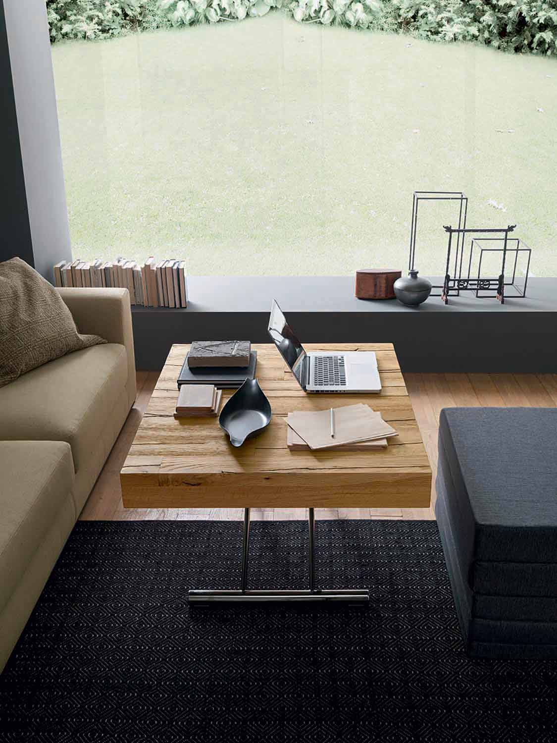 Moderne salontafel van massief hout en metaal, omvormbaar tot eettafel of bed Made in Italy.