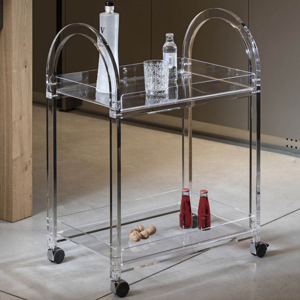 Transparante acryl trolley met made in Italy design wielen.