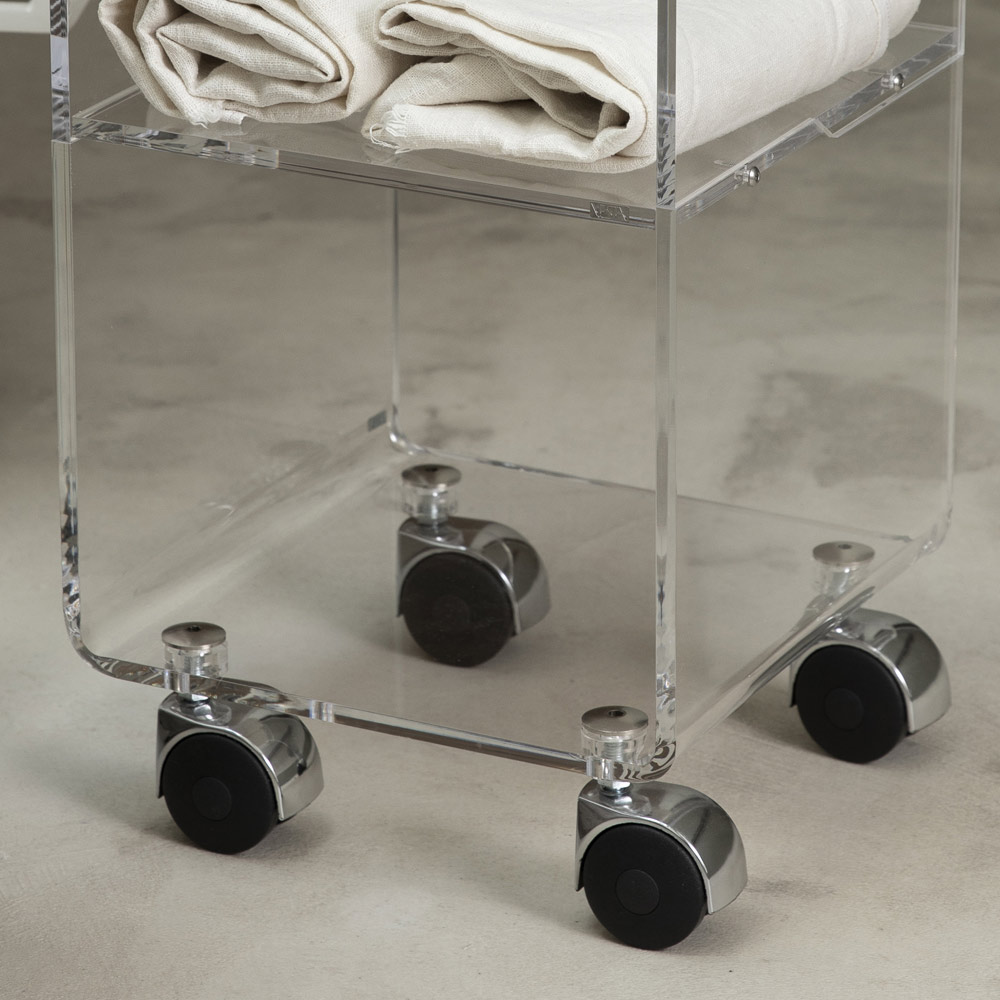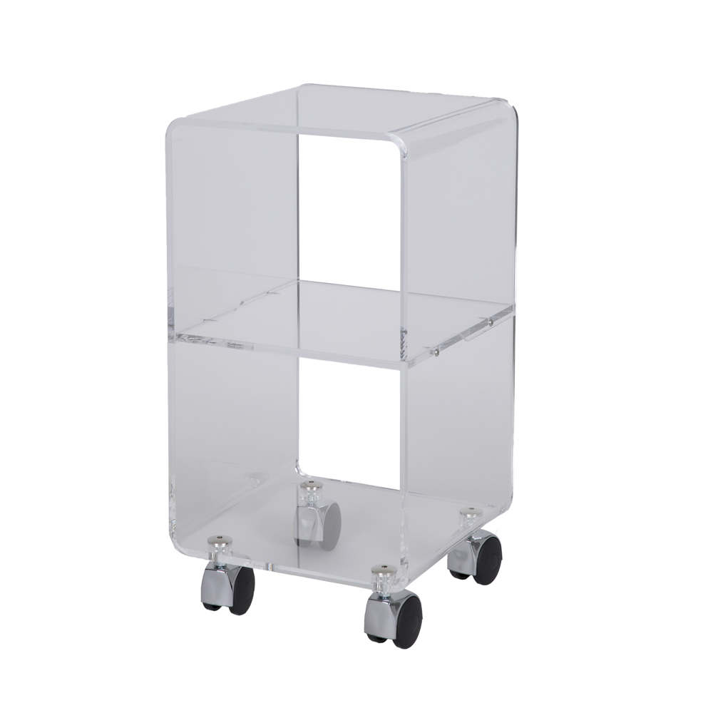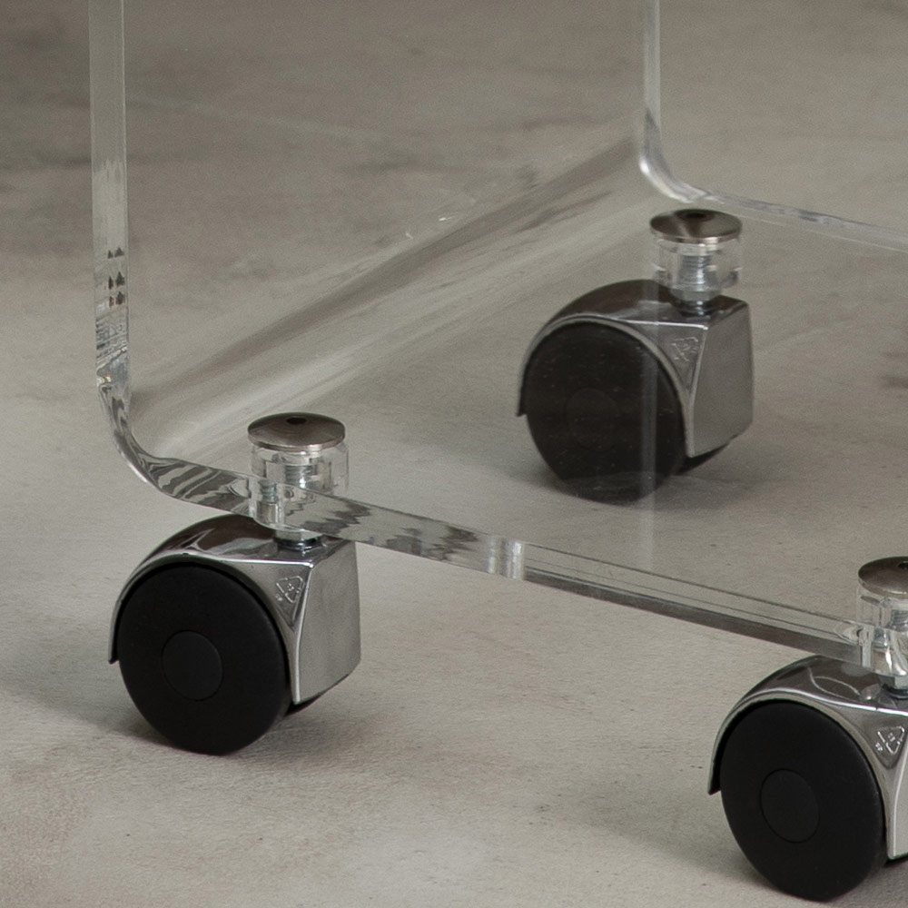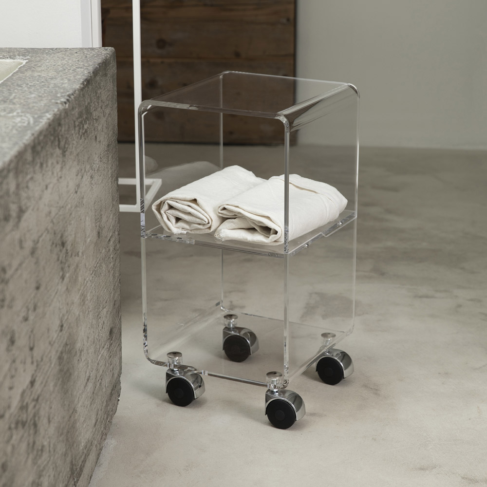 Kolomwagen in transparant acrylkristal met wielen en 1 of 3 planken, gemaakt in Italië.