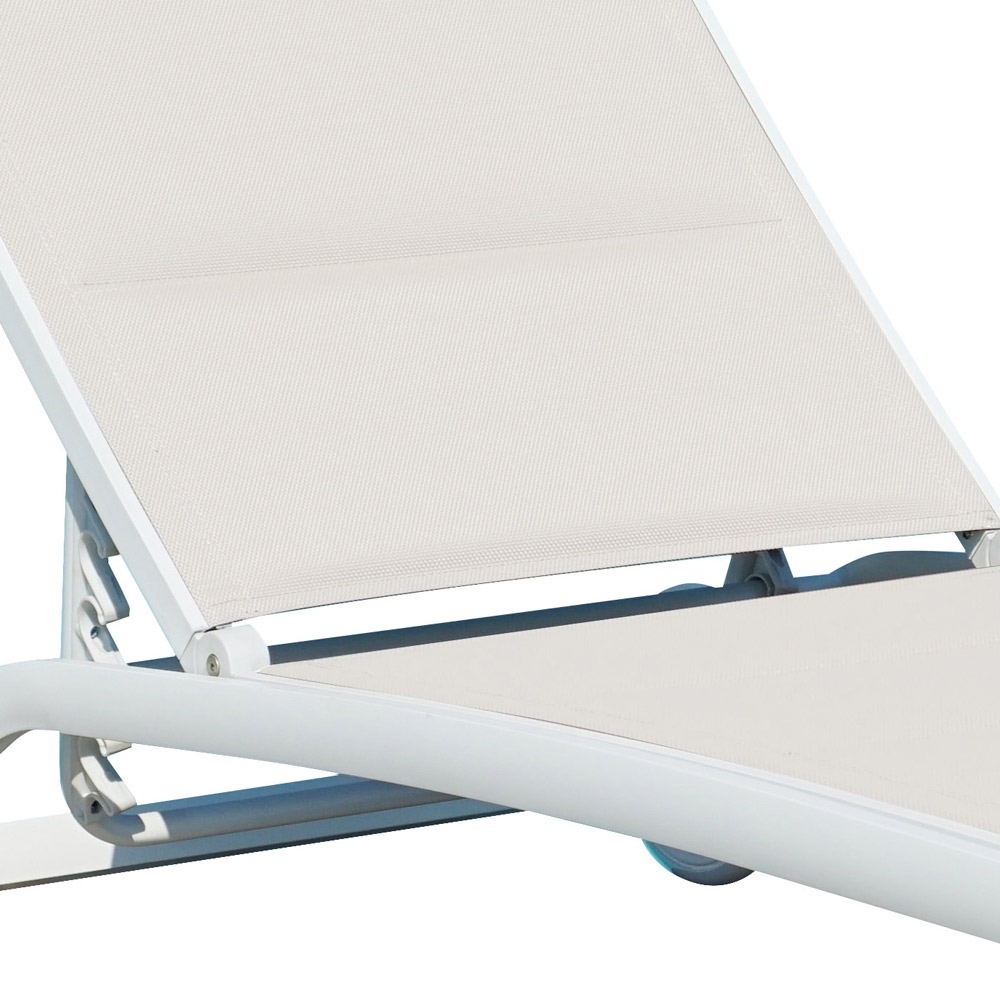 600 gr gewatteerde textileen. De moderne stijl en de sterke functionele kant maken deze chaise longue een perfecte oplossing om elke buitenruimte te verrijken met een exclusief tintje en tegelijkertijd een