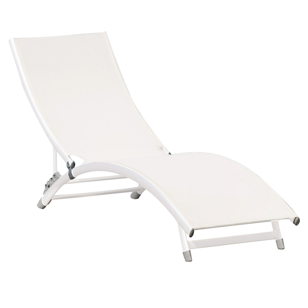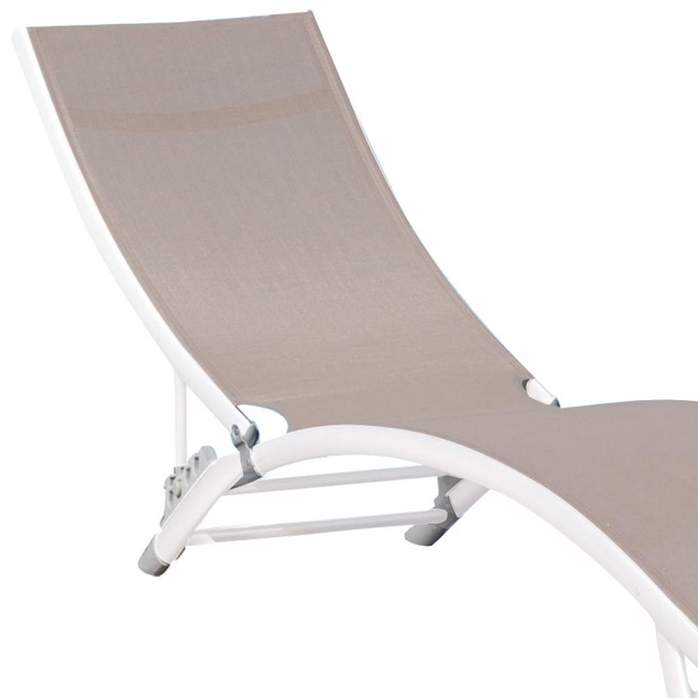 Buiten chaise longue met aluminium structuur en textileen zitting.