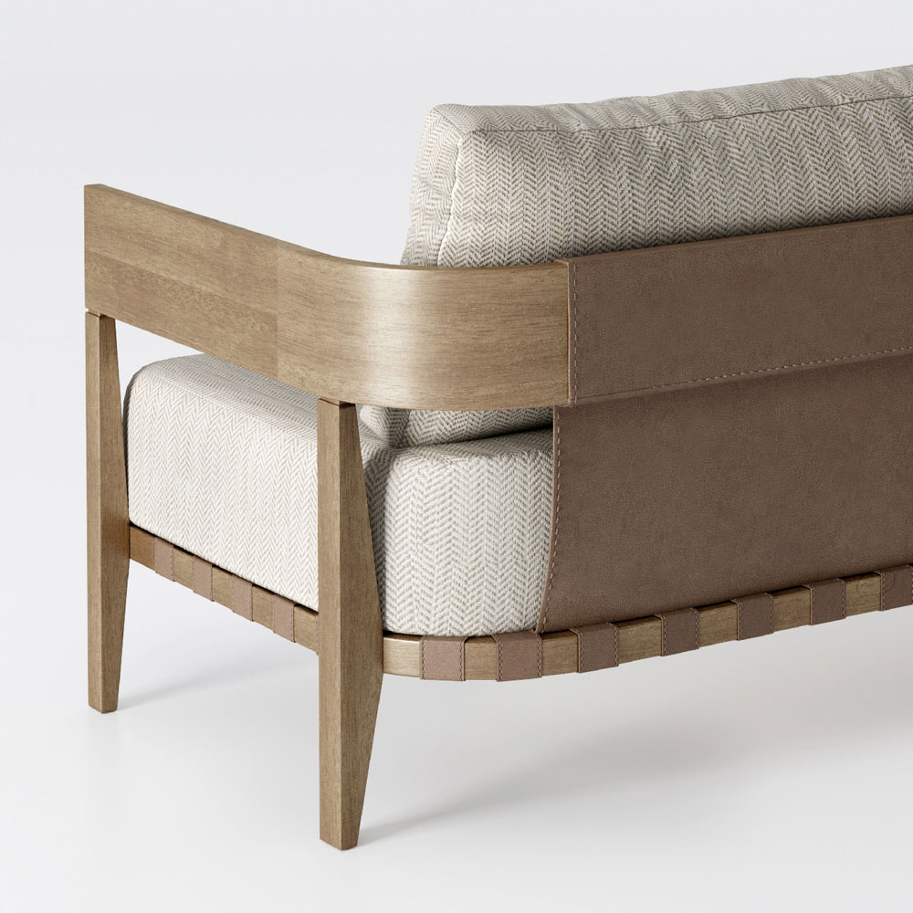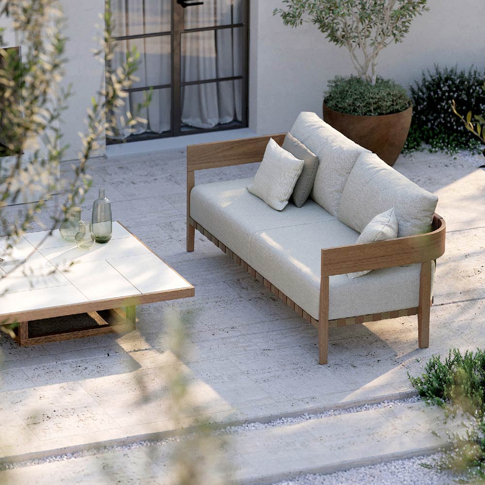 verweerde teakhouten structuur. De bank is versierd in de zitstructuur en in de rugleuning met