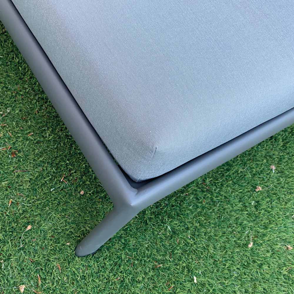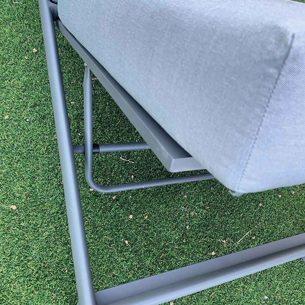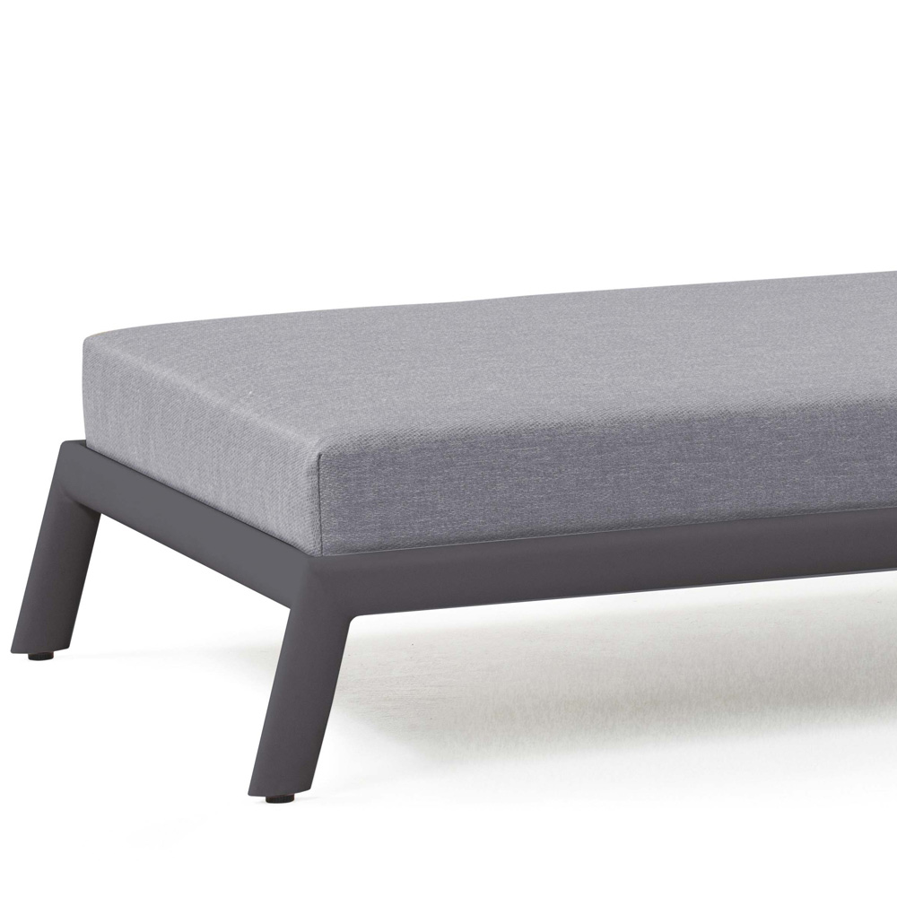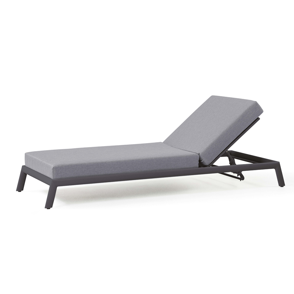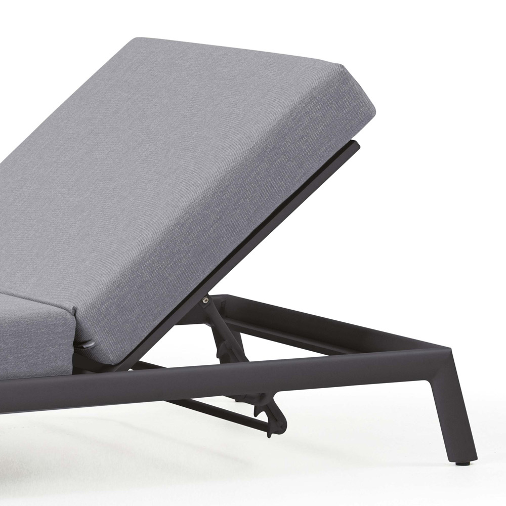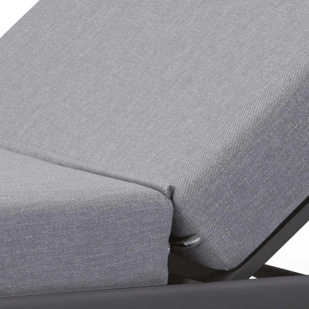 Tuinchaise longue met binnenstructuur in antraciet gelakt aluminium met sneldrogend schuimrubber en hemelsgrijze stoffen bekleding in parasolstof.