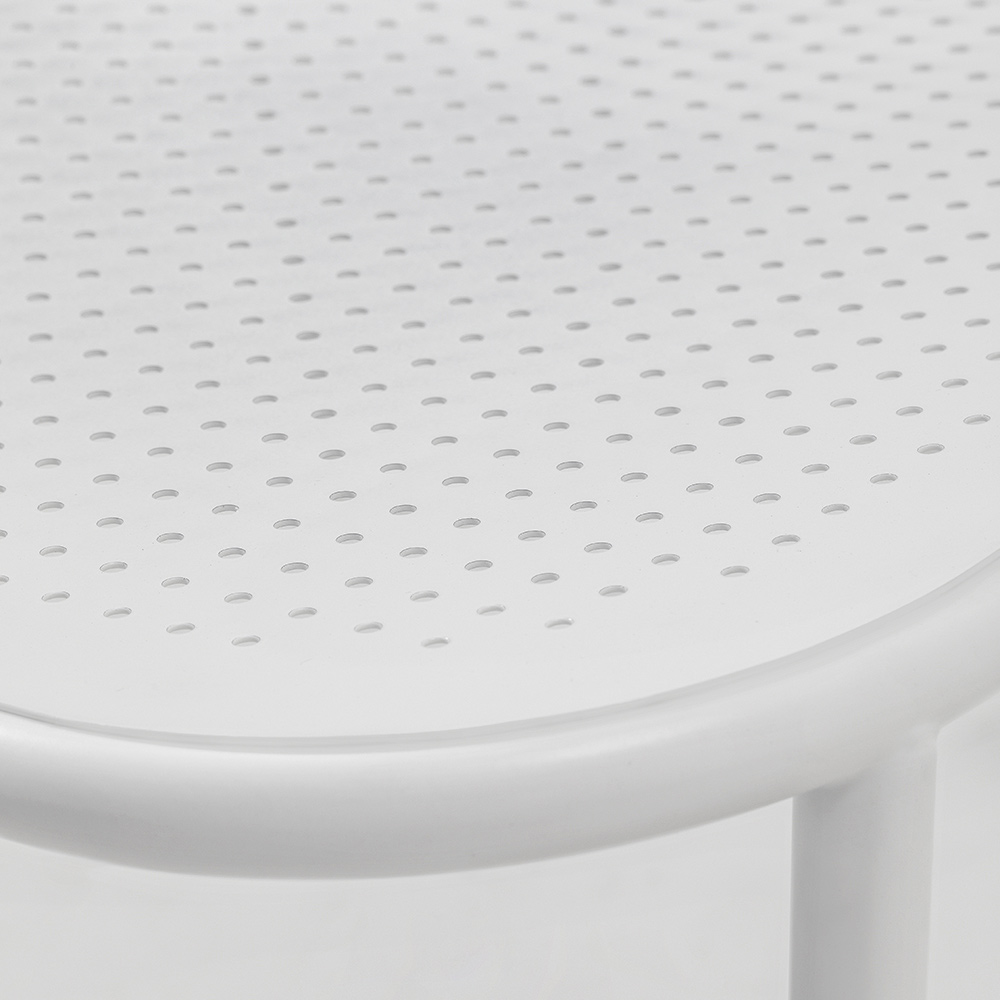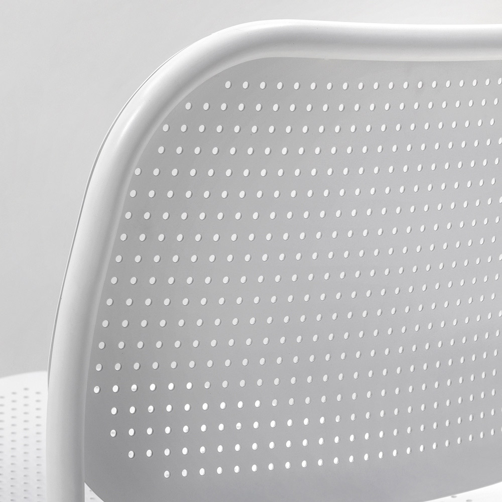 plaatstaal met geperforeerd weefsel, een effect dat het klassieke Weense weefsel herleeft in een eigentijdse toets. Een meubel dat door het gebruik van