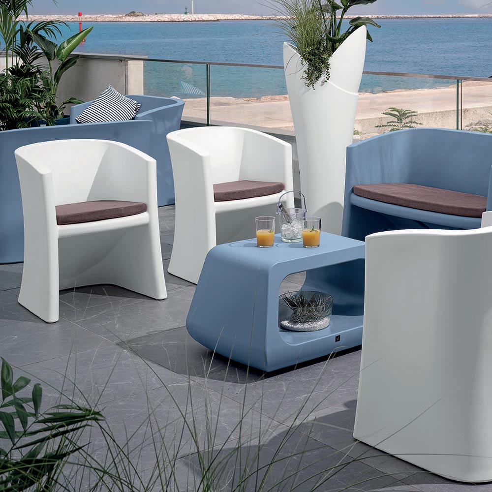 De zachte vorm met essentiële en uitnodigende lijnen omhult je en verwent je, terwijl de structuur een grote weerstand en stabiliteit biedt. Dit hoogwaardige materiaal is in feite essentieel omdat het het product na verloop van tijd ongelooflijk bestand maakt tegen slijtage en weersinvloeden, terwijl de speciale afvoer tussen de rugleuning en de zitting ervoor zorgt dat het water goed kan stromen.