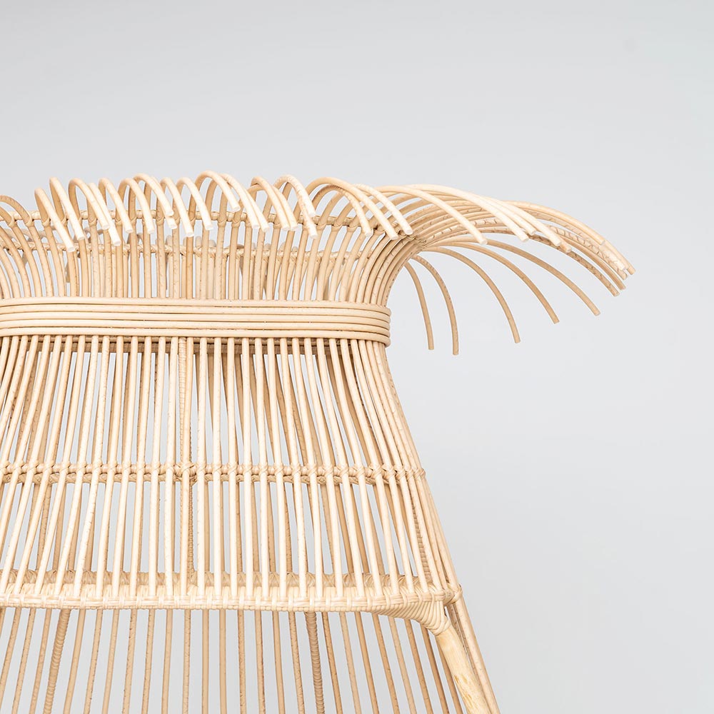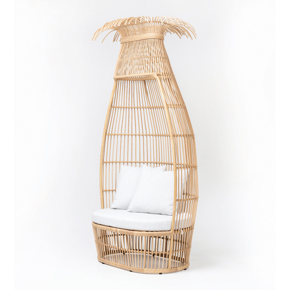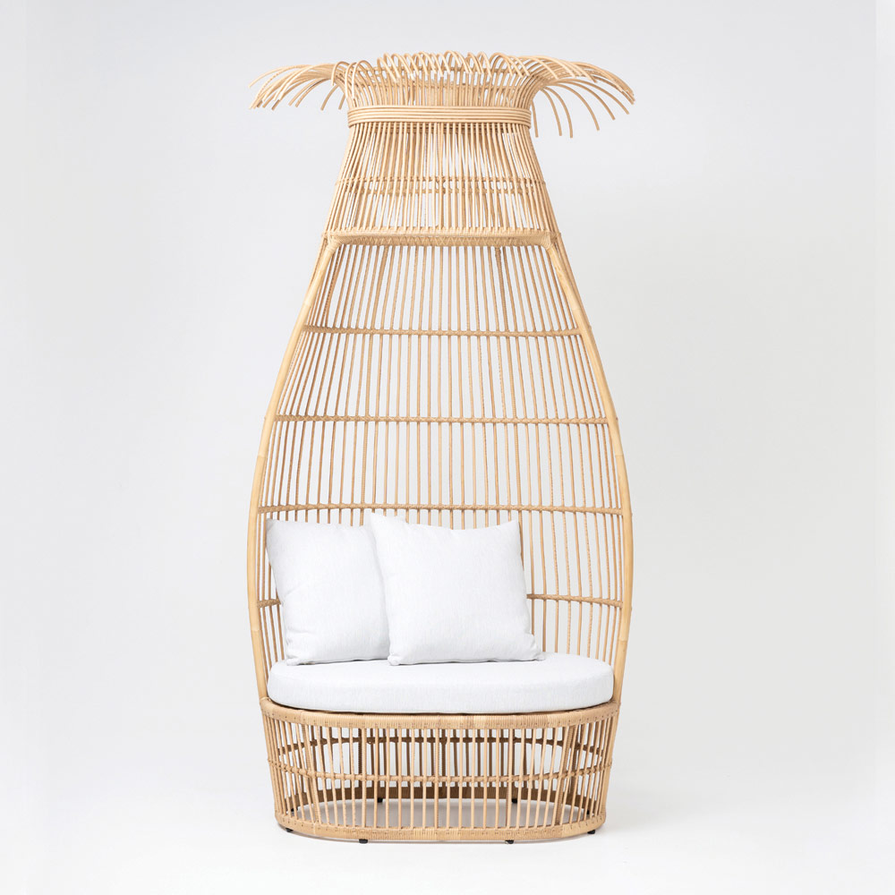 Deze tuinstoel is een waar nest van elegantie en comfort . Zijn hoge, ovale frame, vakkundig vervaardigd uit poly rotan, roept beelden op van exotische strand retraites en past harmonieus in de buitenomgeving. Het open, luchtige ontwerp zorgt voor luchtstroom en licht, terwijl de gebogen vorm een gevoel van bescherming en privacy geeft.