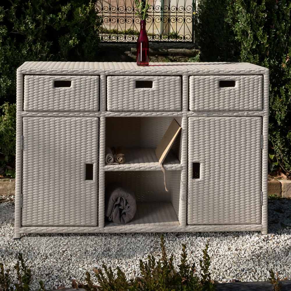servicekastje ideaal voor het opbergen van kussens, handdoeken, keukengerei en alle andere accessoires.