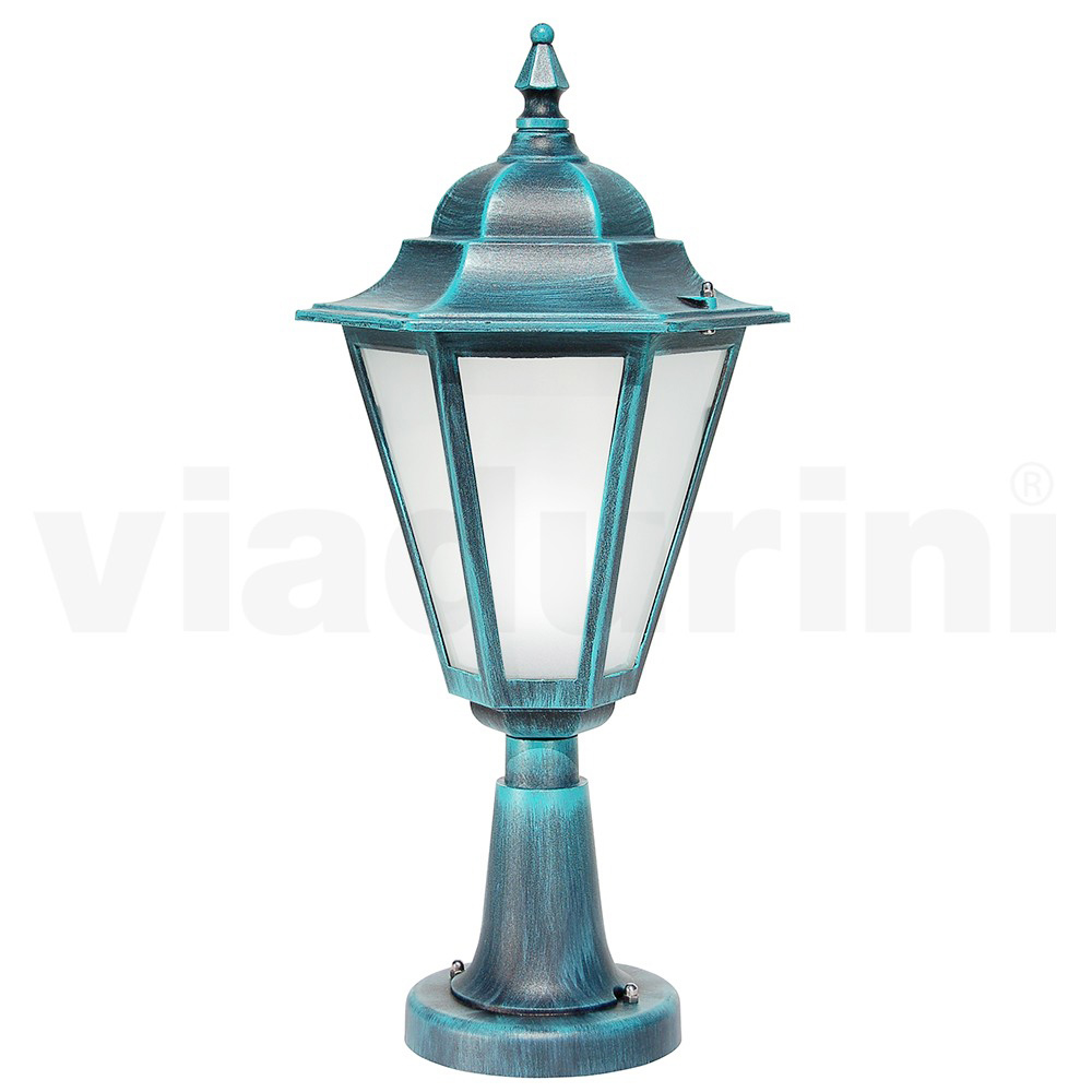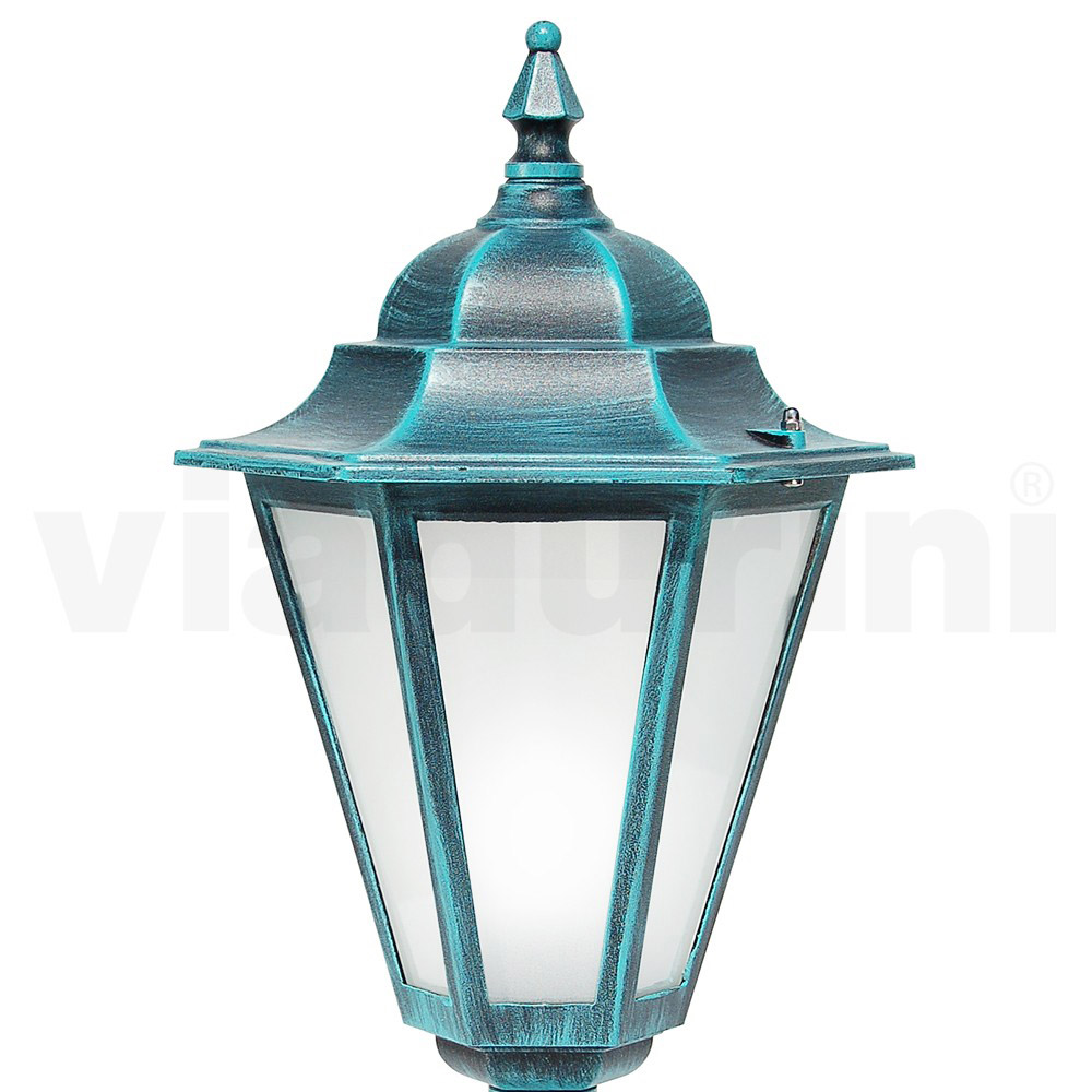 Tuinlamp gemaakt met een structuur van gegoten aluminium en een diffuser van gezandstraald glas , volledig gemaakt in Italië.