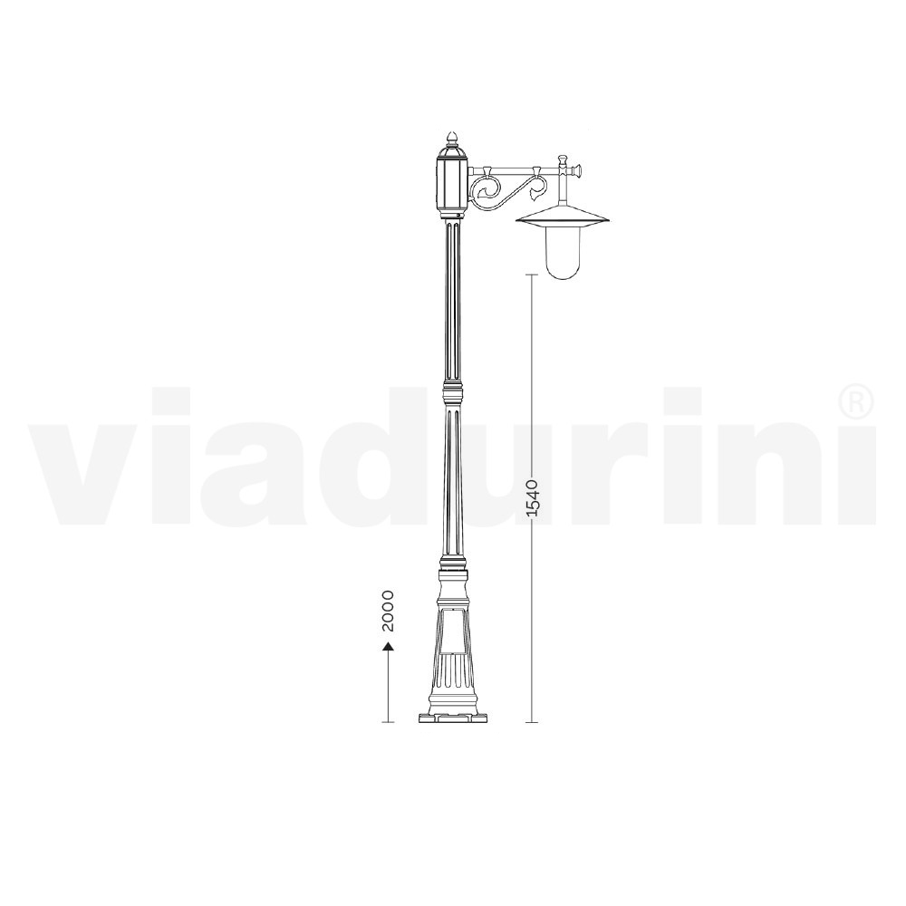 Vintage buitenlantaarnpaal van aluminium en polycarbonaat Made in Italy.