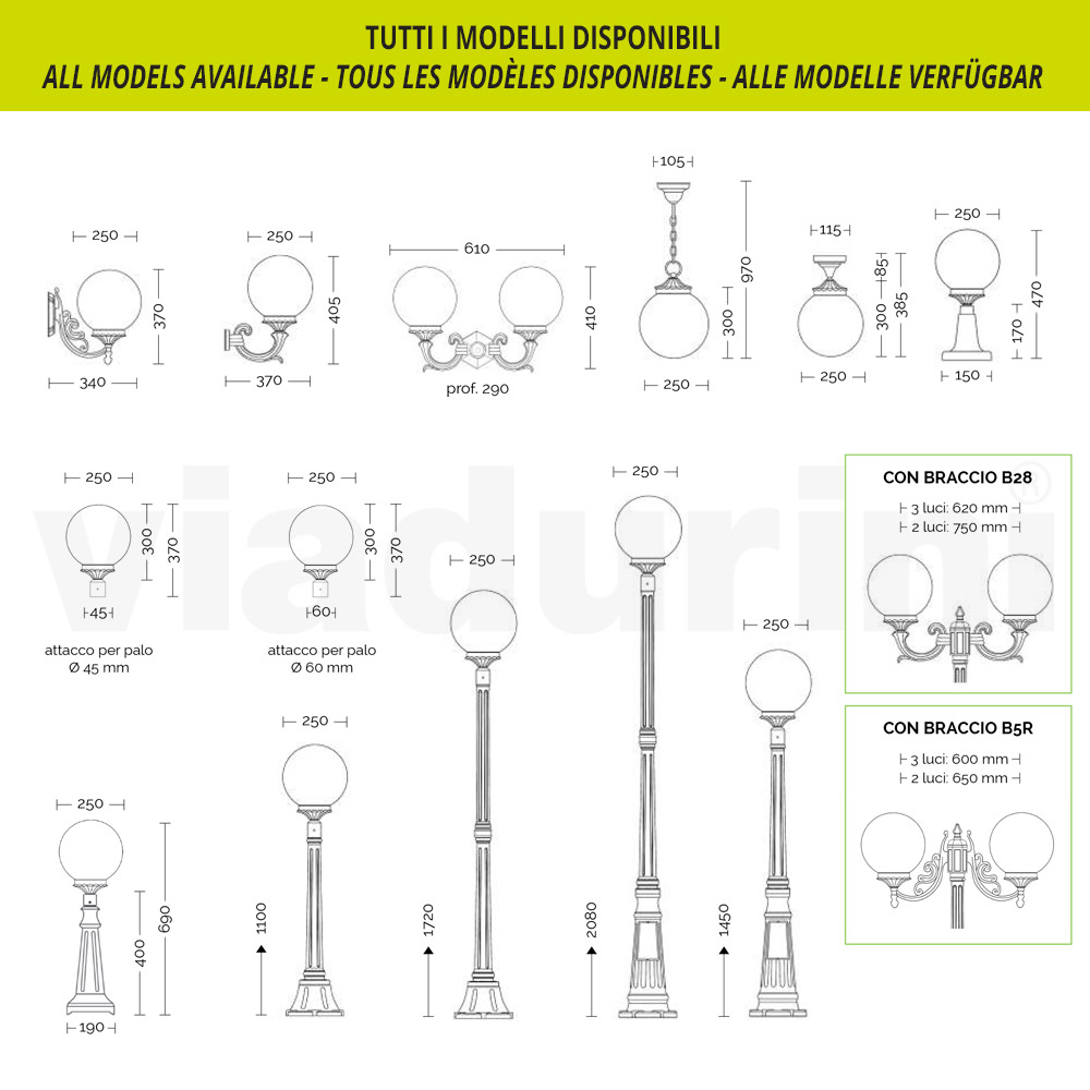 Tuinlamp gemaakt met gegoten aluminium structuur en opalen acryl bol diffuser, volledig gemaakt in Italië.