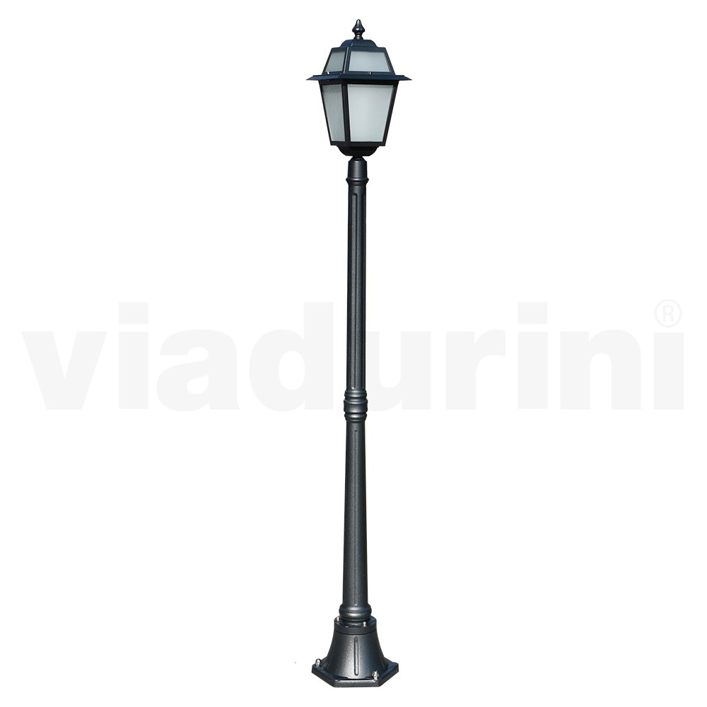 Tuinlamp gemaakt met antraciet afgewerkte gegoten aluminium structuur en gezandstraalde glazen diffuser, volledig gemaakt in Italië.