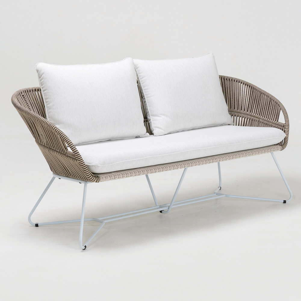 Olefin/PP ROPE vlechtwerk met een tweekleurige parelwitte en cappuccino afwerking en zit- en rugkussen in outdoor
