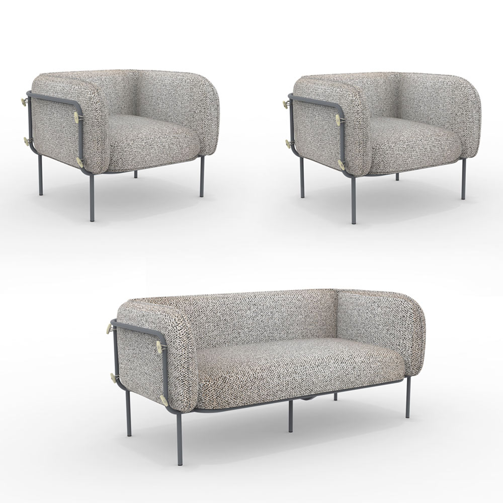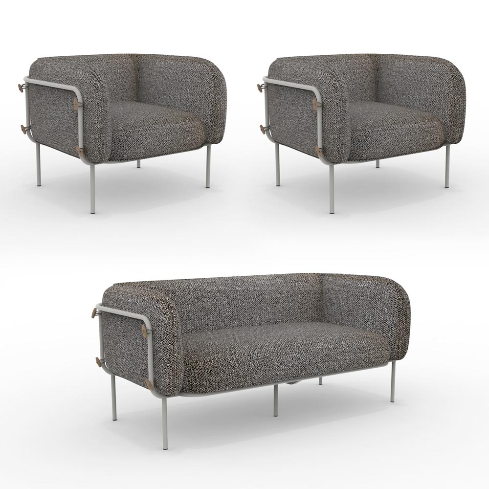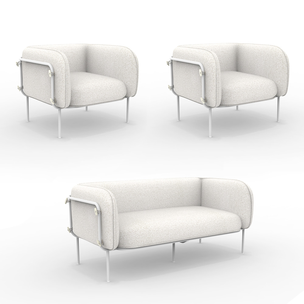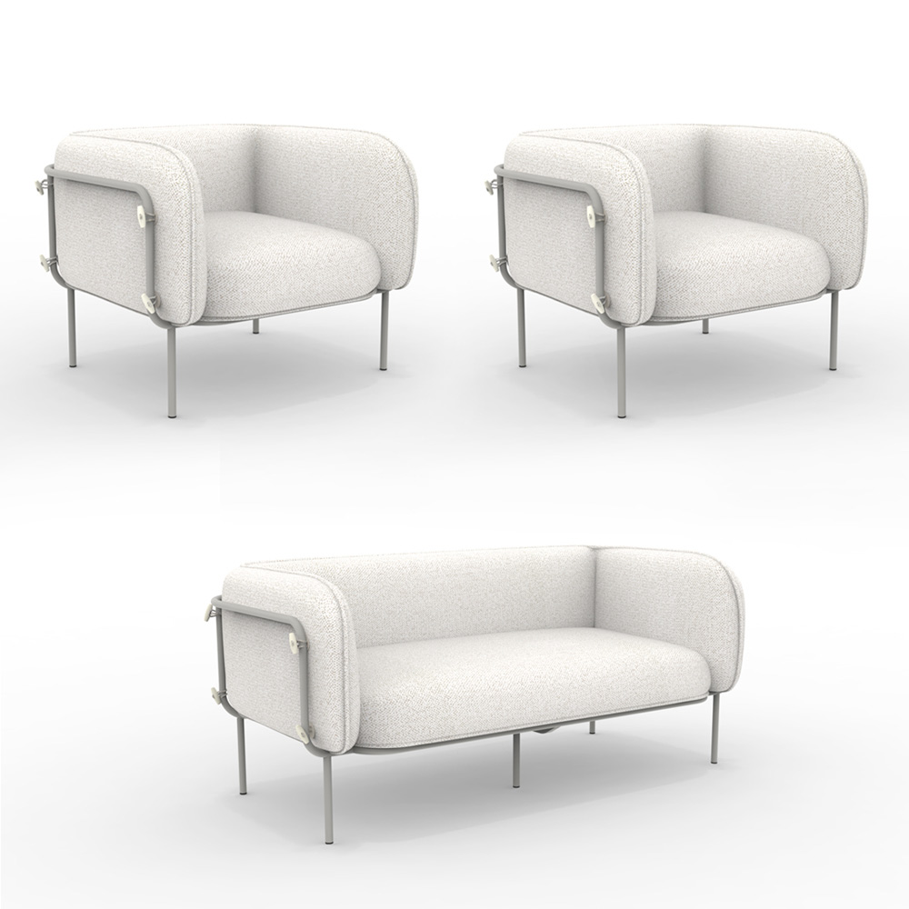 waterdichte en uv-bestendige stof omhult de zachte vulling, die uitnodigt tot momenten van ware ontspanning. De beschikbare stofafwerkingen smelten harmonieus samen met de omgeving, reflecteren het zonlicht en dragen bij aan een sfeer van sereniteit en stijl. Naast een sprankelend zwembad of in een groene hoek van de tuin belooft deze loungeset blijvend comfort en schoonheid die de tijd trotseert.