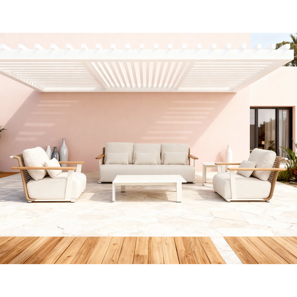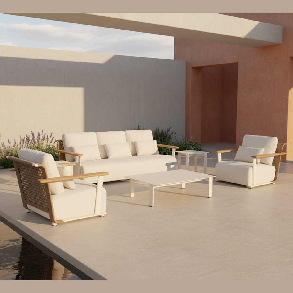 Het is een woonkamer ontworpen voor mensen die willen genieten van buitenruimtes in stijl, met oog voor kwaliteit en duurzaamheid – perfect om te ontspannen, te genieten van een aperitief met vrienden of gasten te verwelkomen in een design dat voor zich spreekt.