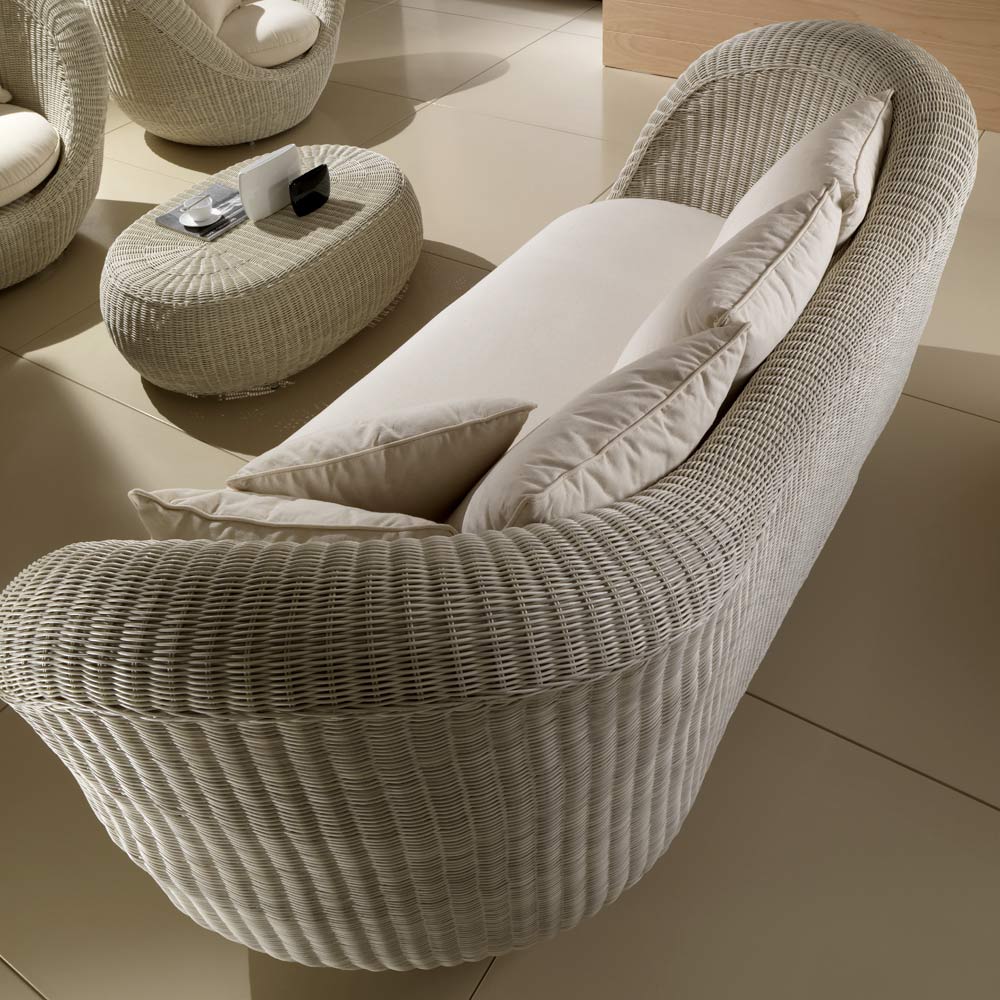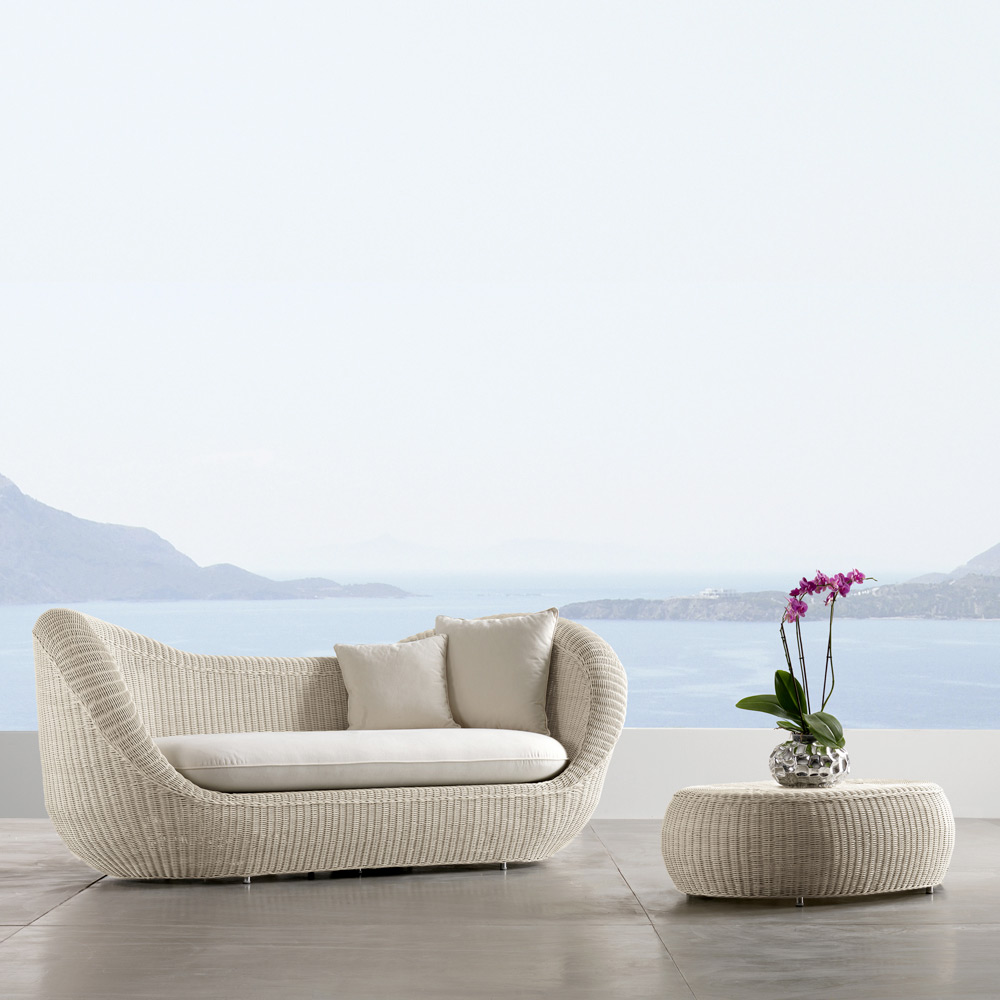 Deze outdoor lounge wordt gekenmerkt door zijn silueus en tijdloos design , afgeronde lijnen en het raffinement van het weefwerk dat met de hand is vervaardigd door de beste ambachtslieden ter wereld. in synthetisch vlechtwerk. Het frame is gemaakt van gepoedercoat aluminium , waarop de hoogste kwaliteit Rehau merk Polyrattan vezel met de hand is geweven.
