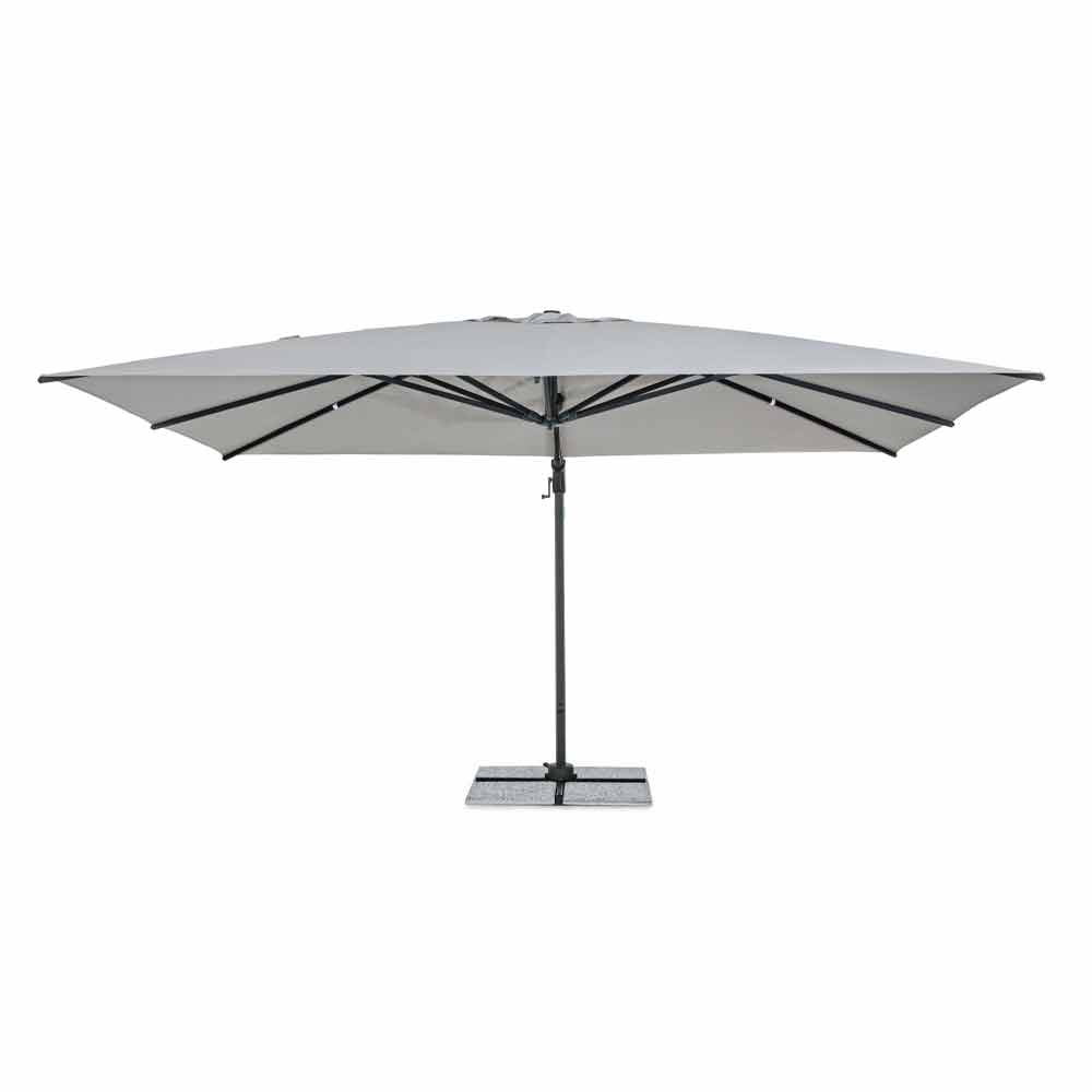 Tuinparasol 3x4 in lichtgrijs polyester en antraciet aluminium.