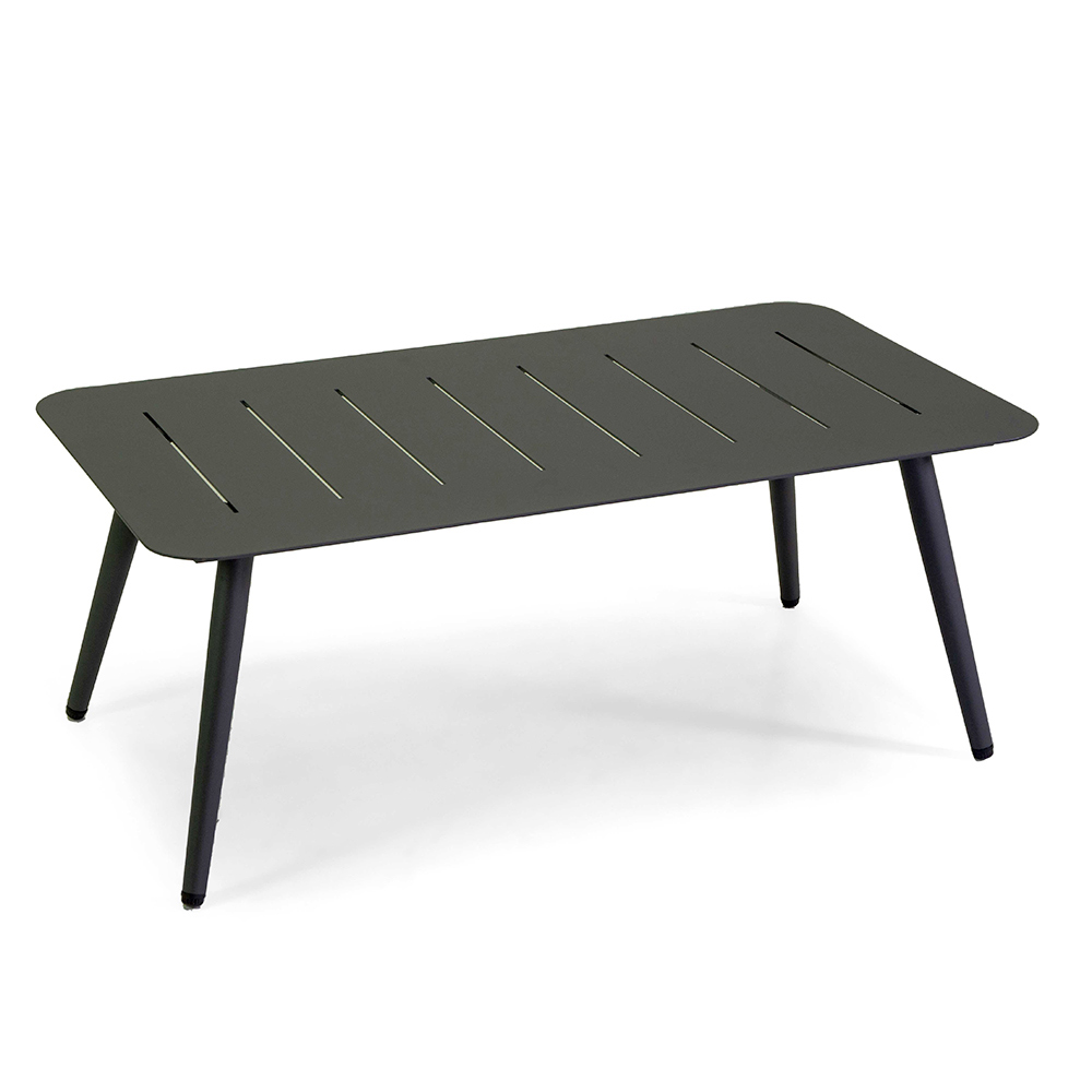 De bijpassende tafel met zijn essentiële ontwerp maakt het ensemble compleet en biedt een praktische oplossing voor het plaatsen van drankjes of boeken, waardoor je buitenruimte een echt verlengstuk van de woonkamer wordt, ideaal voor momenten van ontspanning of voor het ontvangen van gasten.