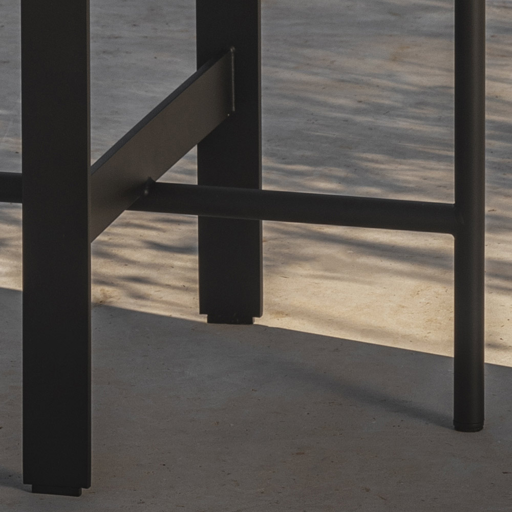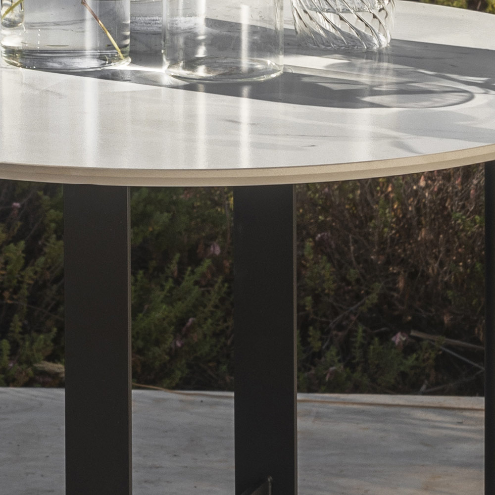 Het porseleinen blad van steengoed creëert niet alleen een prachtig elegant effect , maar maakt deze salontafel ook zeer compact en veelzijdig, perfect om elke buiteninrichting stijlvol af te ronden zonder het functionele aspect te overschaduwen.