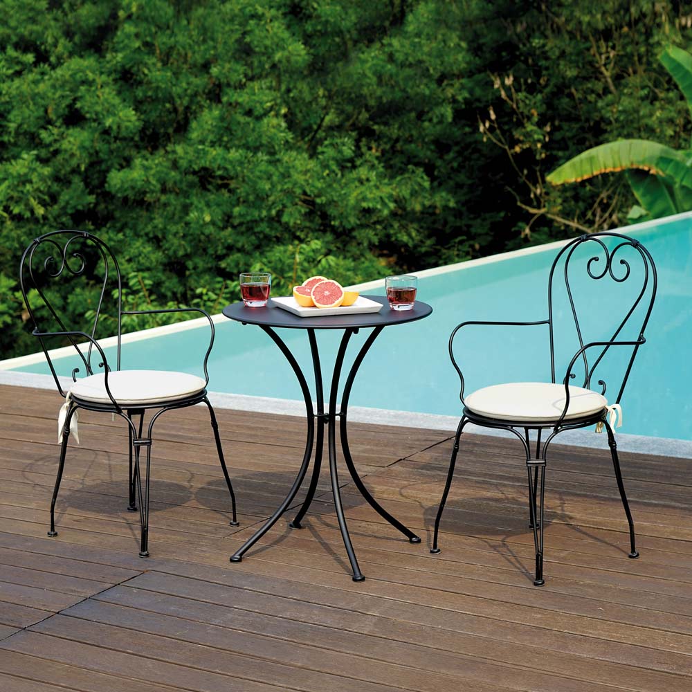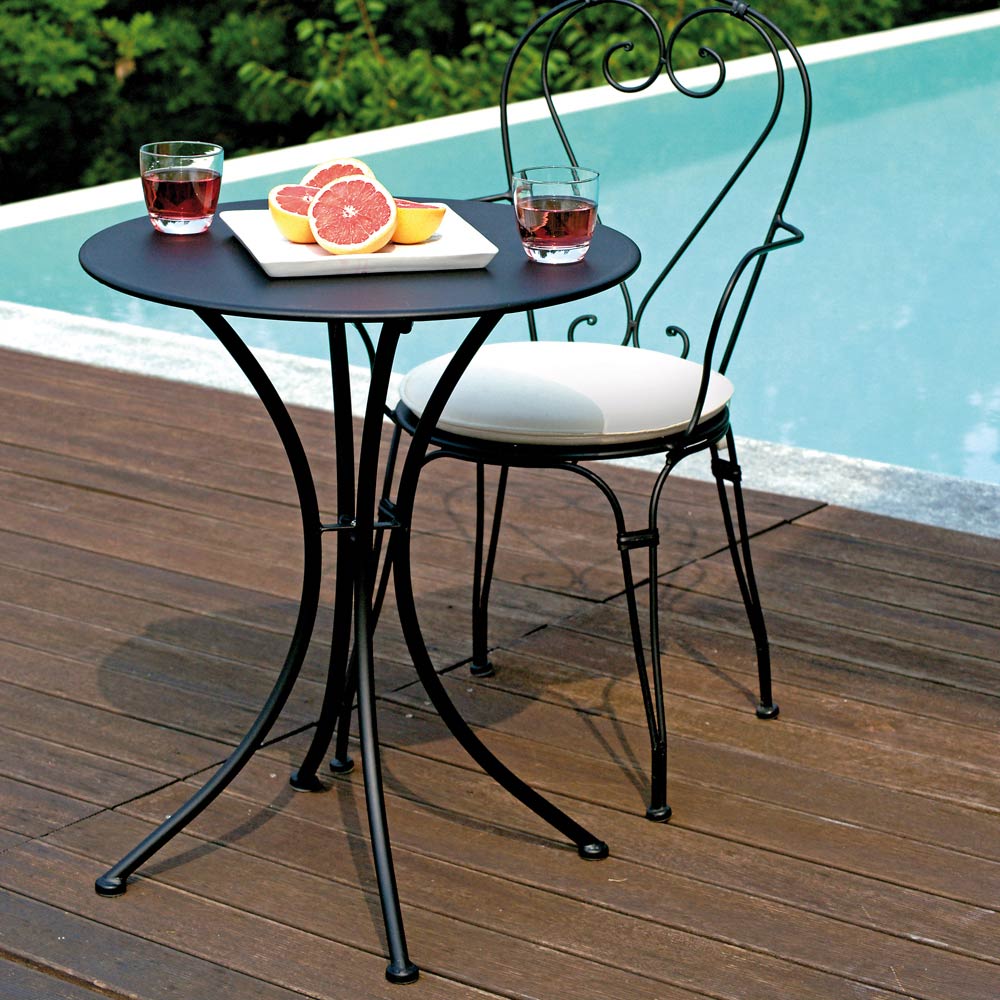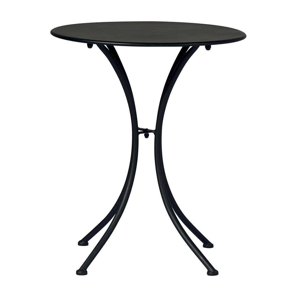 Ronde tuintafel geheel gemaakt van zwart gelakt ijzer met roestwerende behandeling .Een meubel waarvan de esthetiek wordt gekenmerkt door uitgebalanceerde volumes en heldere vormen waarmee het elke buitencontext, zowel huishoudelijk als contract, kan voorzien van moderne elegantie.