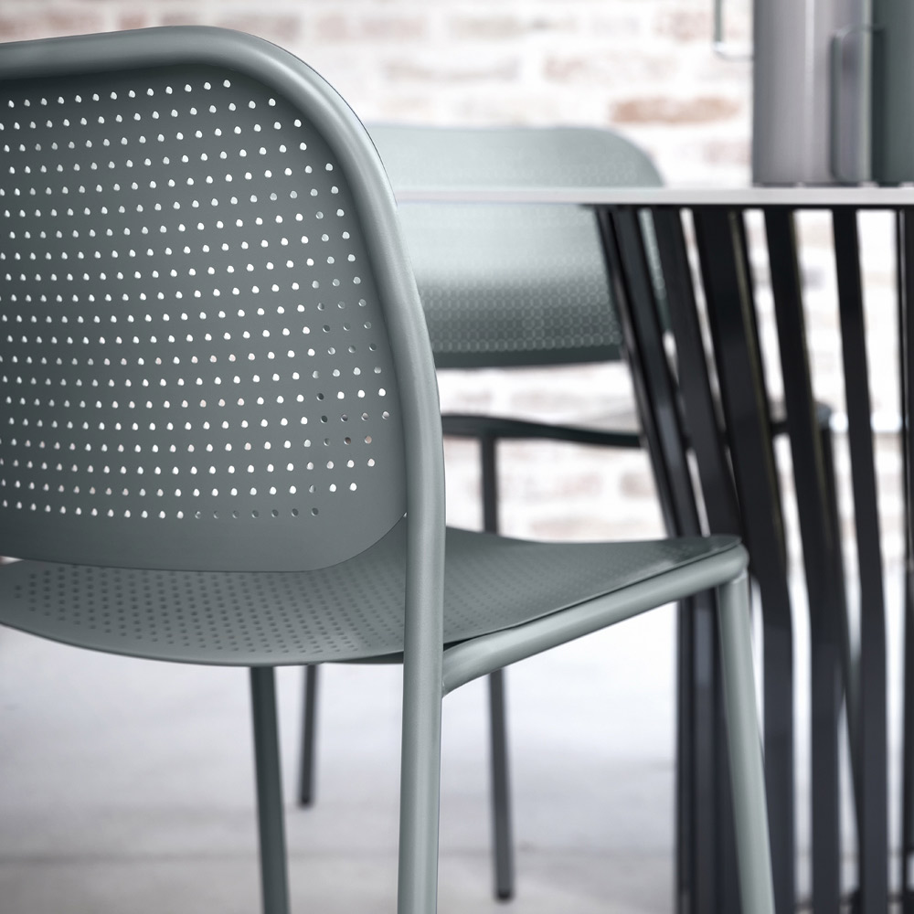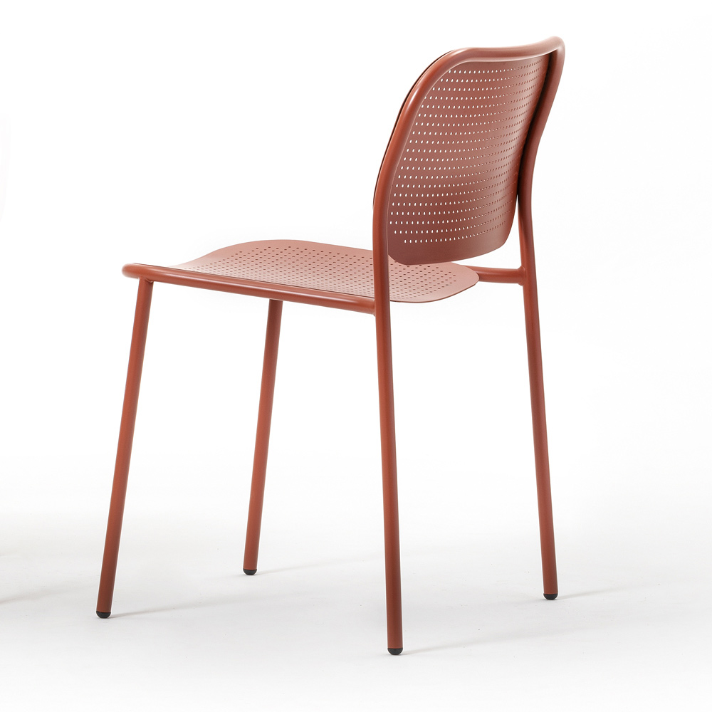 unieke stijl die het onderscheidt. De mogelijkheid om te stapelen benadrukt ook de functionele kant en maakt het ook een perfecte oplossing voor contractomgevingen zoals bars en restaurants waar het essentieel is om ruimtes te kunnen optimaliseren wanneer de stoelen niet in gebruik zijn.