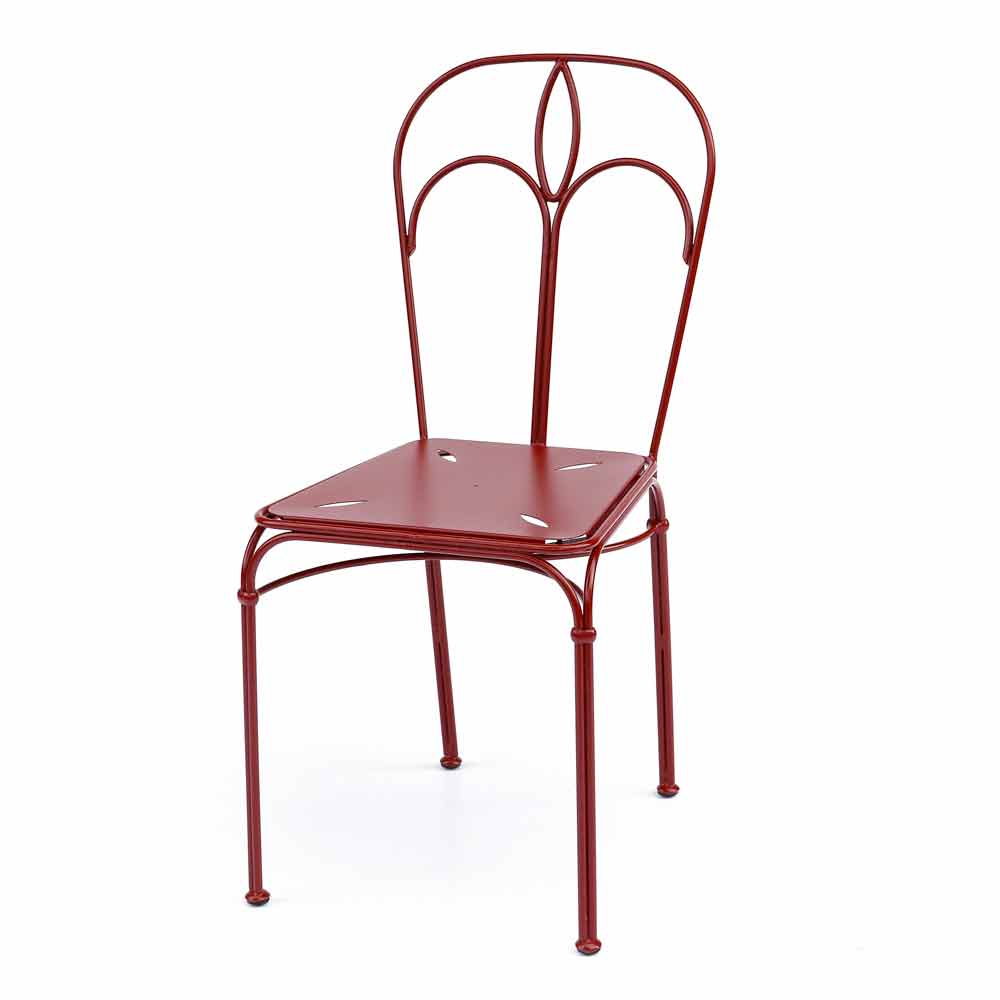 Tuinstoel in rood geverfd ijzer met kussen Made in Italy, 2 stuks.
