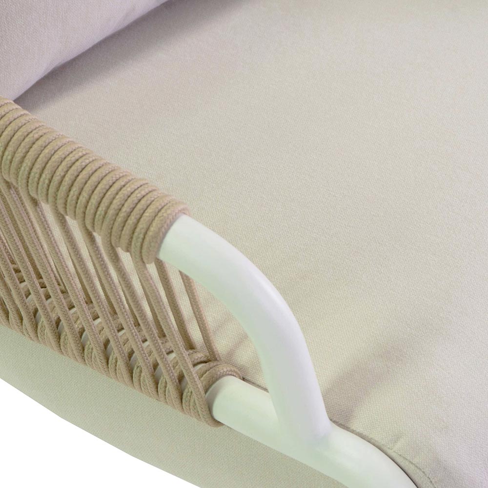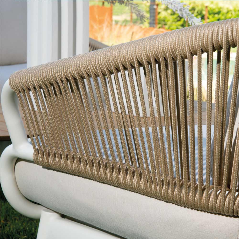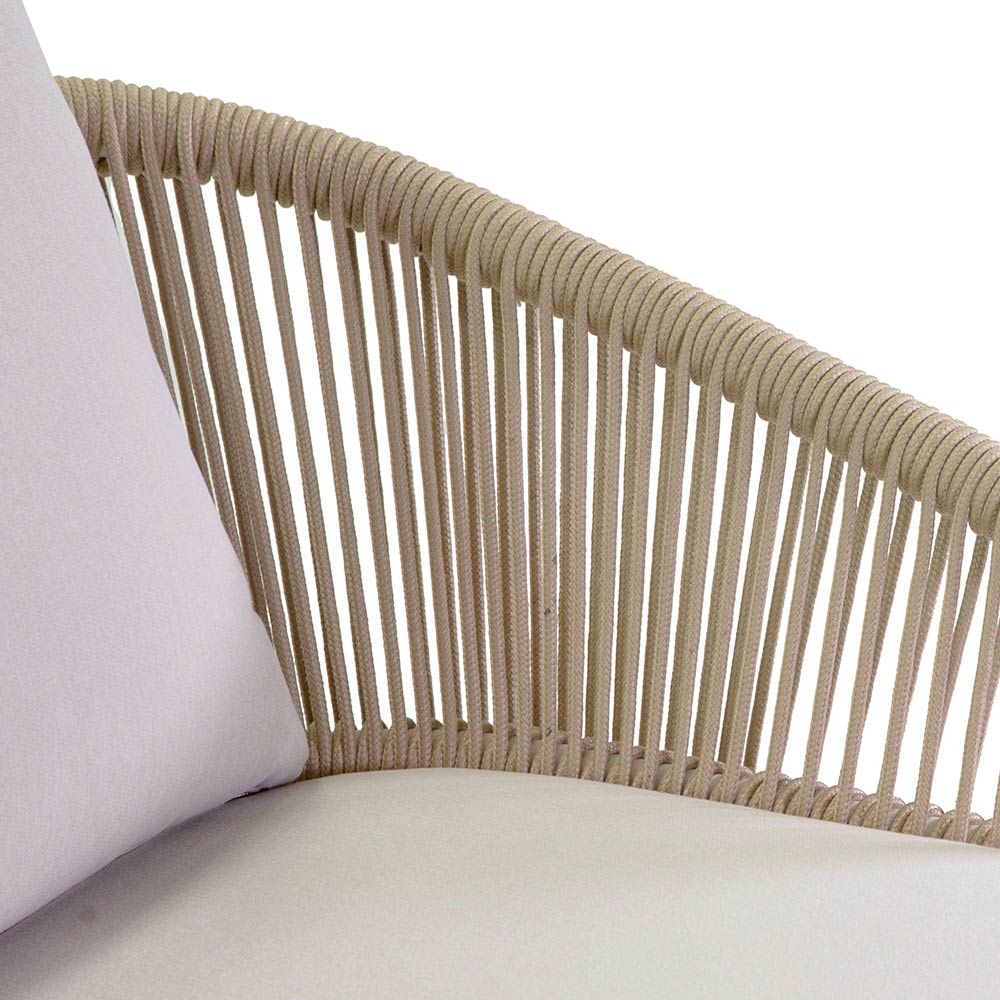 Het dikke en comfortabele kussen van hoogwaardige stof biedt een extreem ontspannende zitervaring, ideaal voor lange uren van gesprek of ontspanning in uw tuin of terras. Gecompleteerd met een elegant rugkussen, ondersteunt deze fauteuil niet alleen uw welzijn, maar ook de esthetiek van uw buitenruimte.
