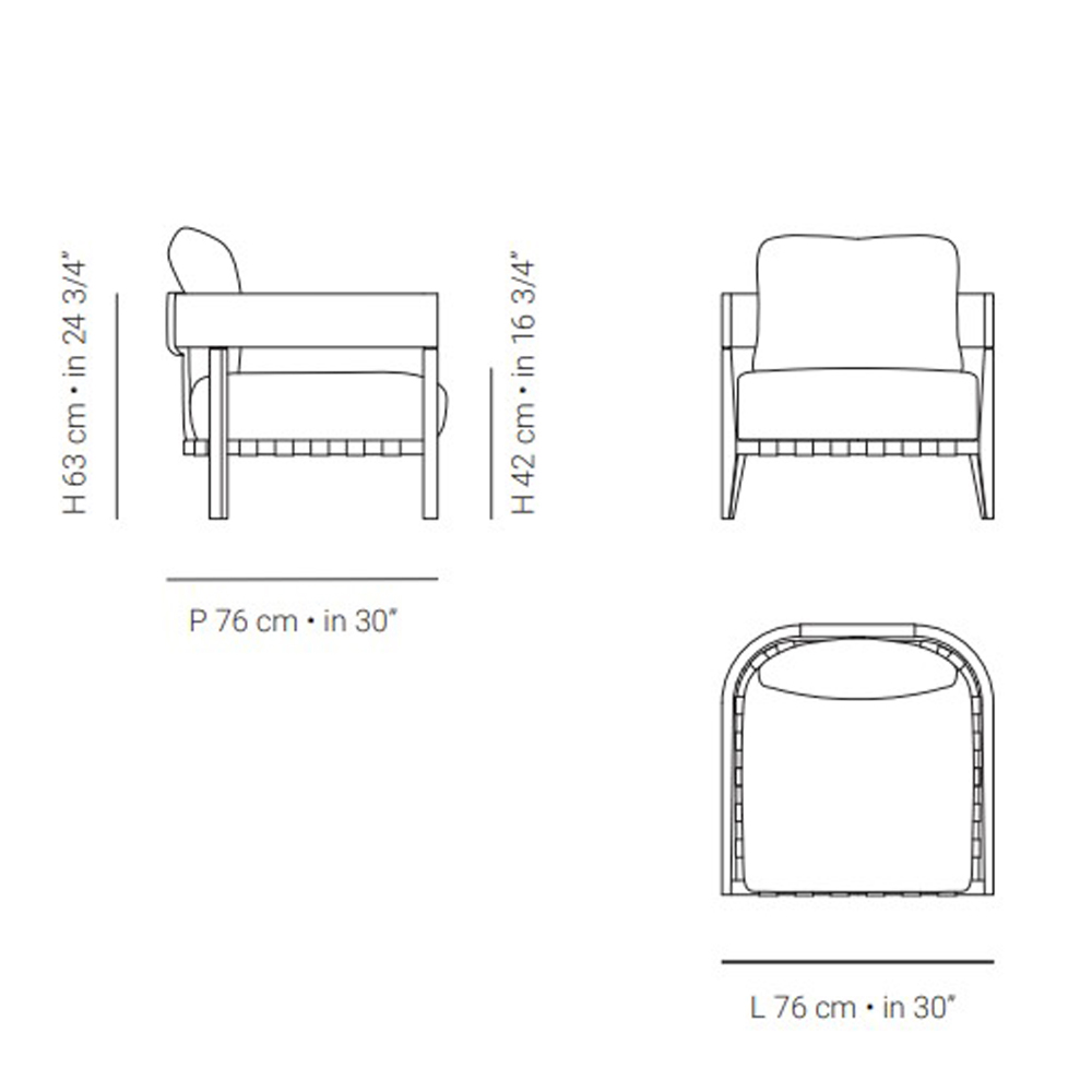 Tuinfauteuil van teakhout met gewatteerde zitting en rugleuning Gemaakt in Italië