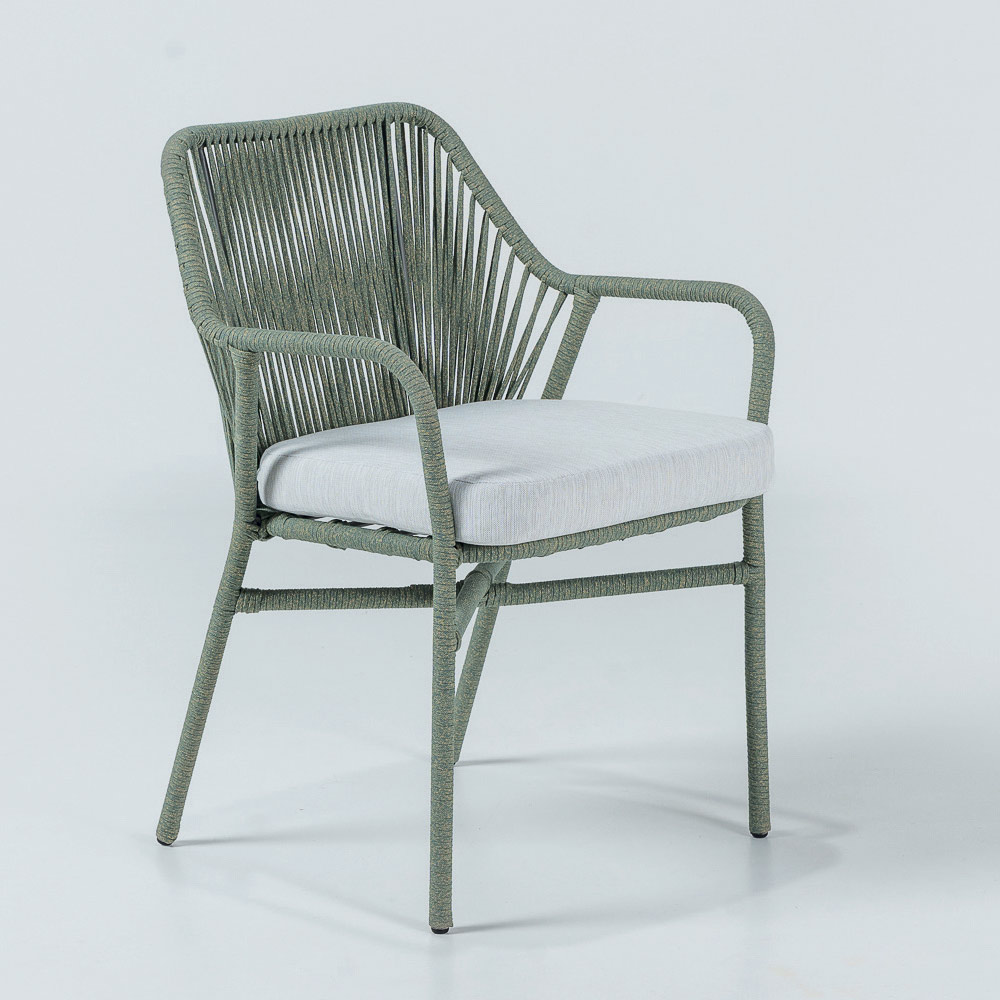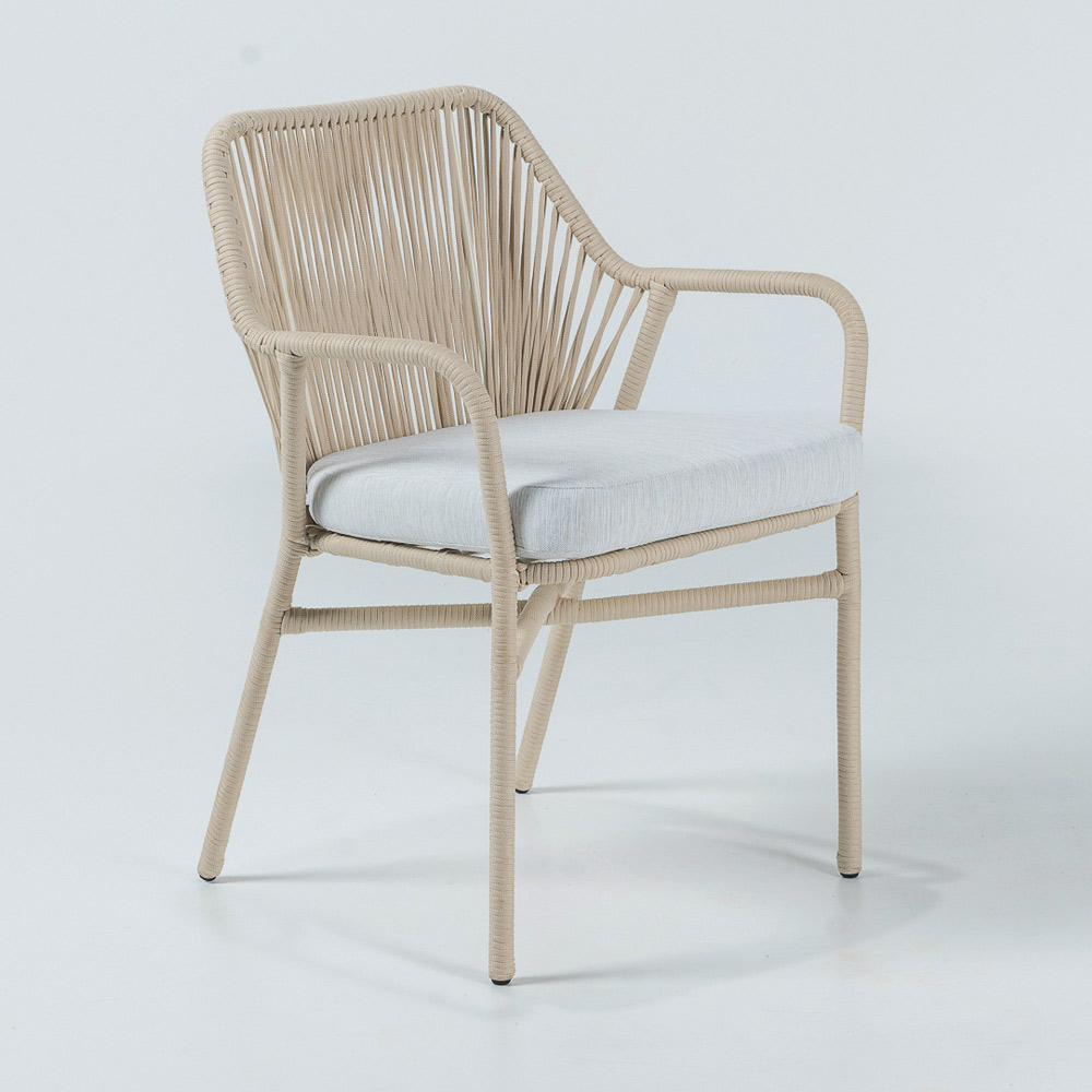 Tuinstoel van aluminium, touwvlechtwerk en zitkussen