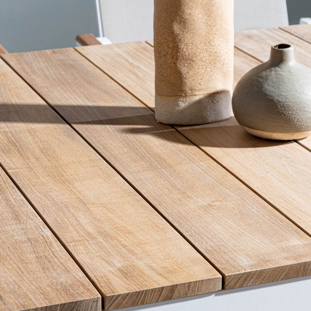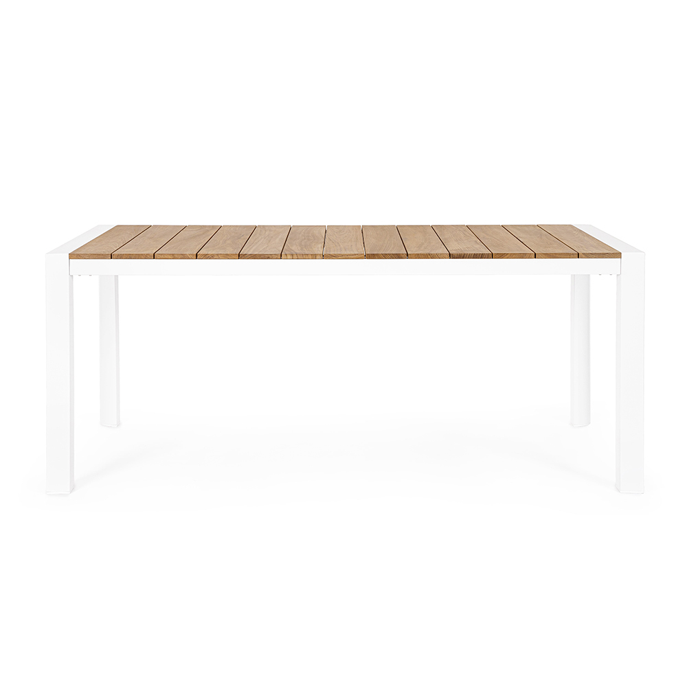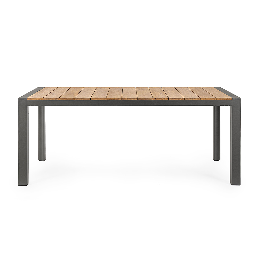 Deze tuintafel vertegenwoordigt een perfecte ontmoeting tussen moderne soberheid en natuurlijke warmte . De lineaire en minimalistische structuur in gelakt aluminium combineert harmonieus met het warme houten blad, waardoor een visueel contrast ontstaat dat zowel trendy als tijdloos is. Ideaal voor zomerse diners, brunches onder de zon of als stijlelement voor uw buitenruimte, deze tafel is een treffend voorbeeld van eigentijds design . Het royale oppervlak biedt voldoende ruimte om vrienden en familie te ontvangen, terwijl de weerstand van de materialen een lange levensduur en onderhoudsgemak garandeert. Niet alleen een tafel om aan te eten, maar ook een ontmoetingspunt waar u kostbare momenten kunt delen. Dit stuk is de optimale keuze voor degenen die de charme van essentie en functionele elegantie waarderen.