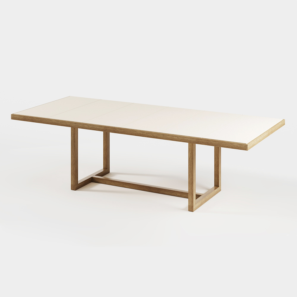 steengoedplaten die het blad omlijnen en de tafel karakter en persoonlijkheid geven.