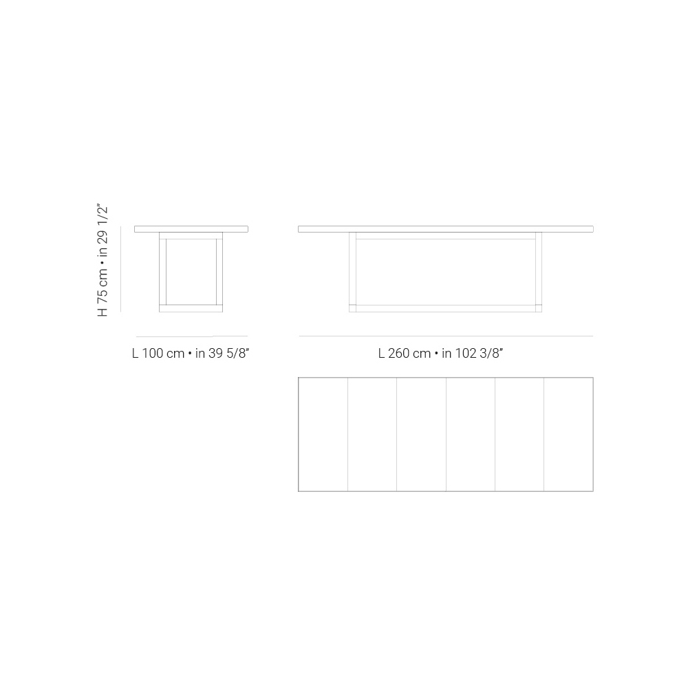 - B 260cm x D 100cm x H 75cm