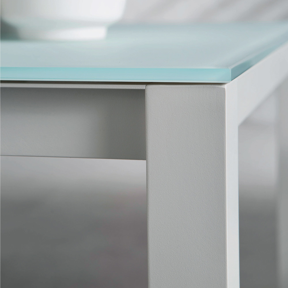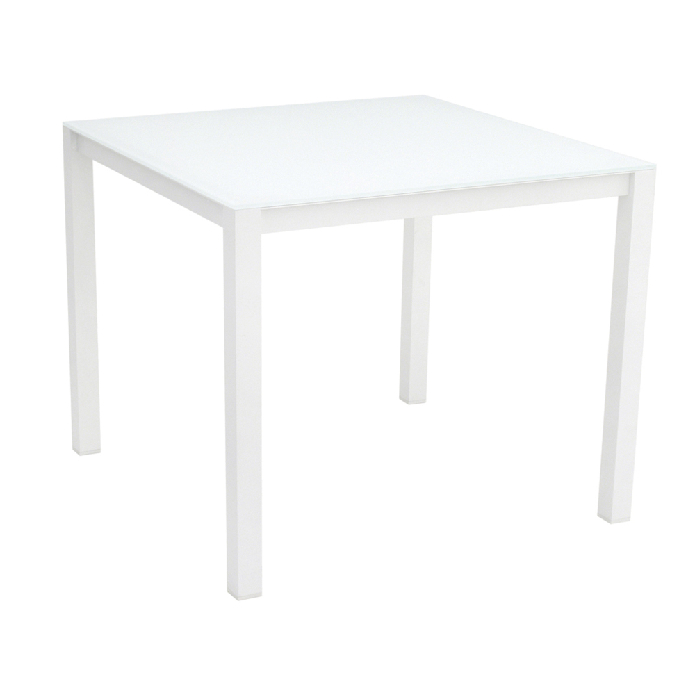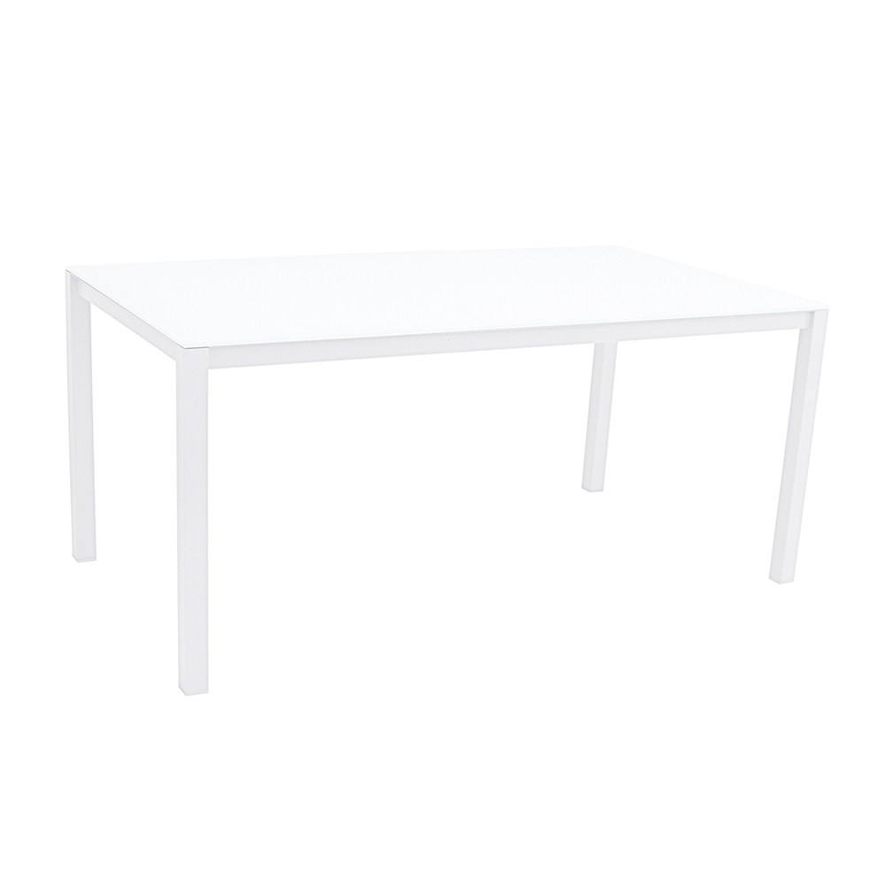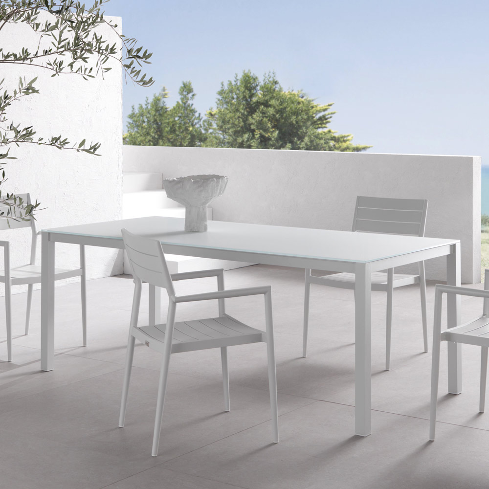 Eettafel voor in de tuin met aluminium structuur met epoxy poedercoating en achterkant van gelakt glas