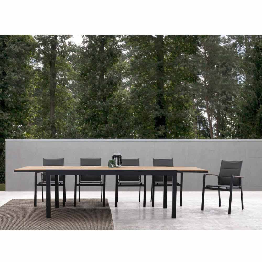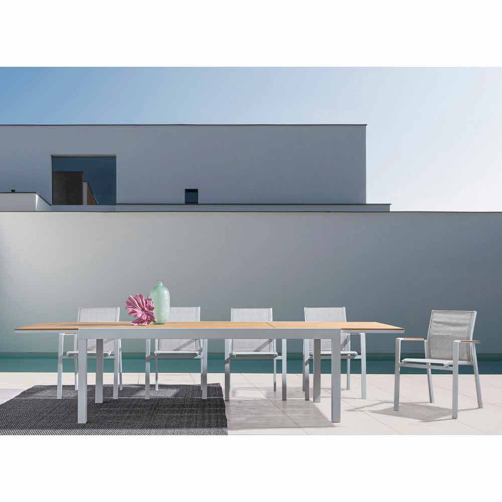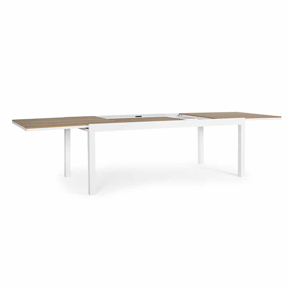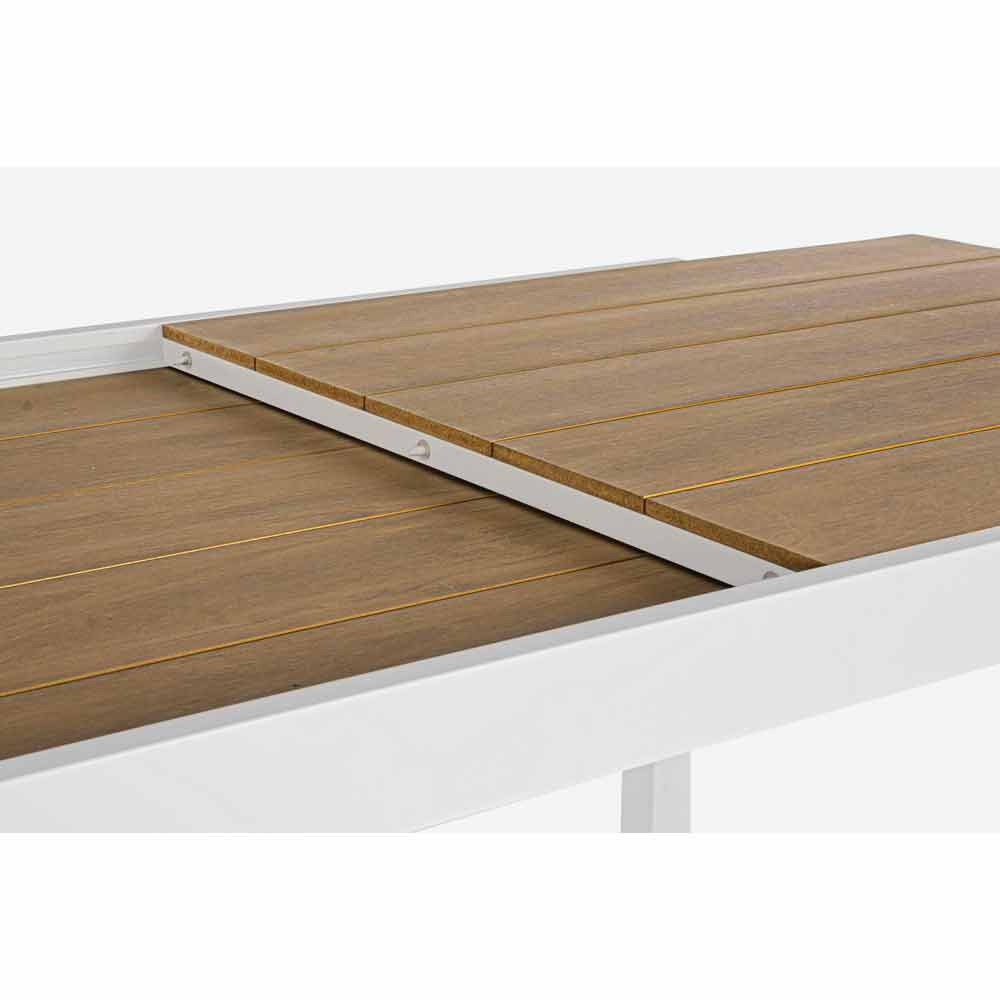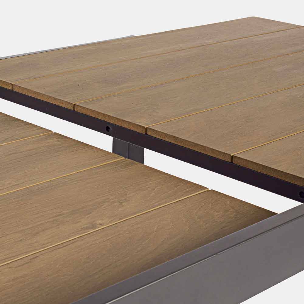 Blad in polywood (composietmateriaal met een gelijkaardige uitstraling als hout) 90% polystyreen 10% sbs teak kleur. Intrekbare verlenging. Gegalvaniseerde stalen schroeven.