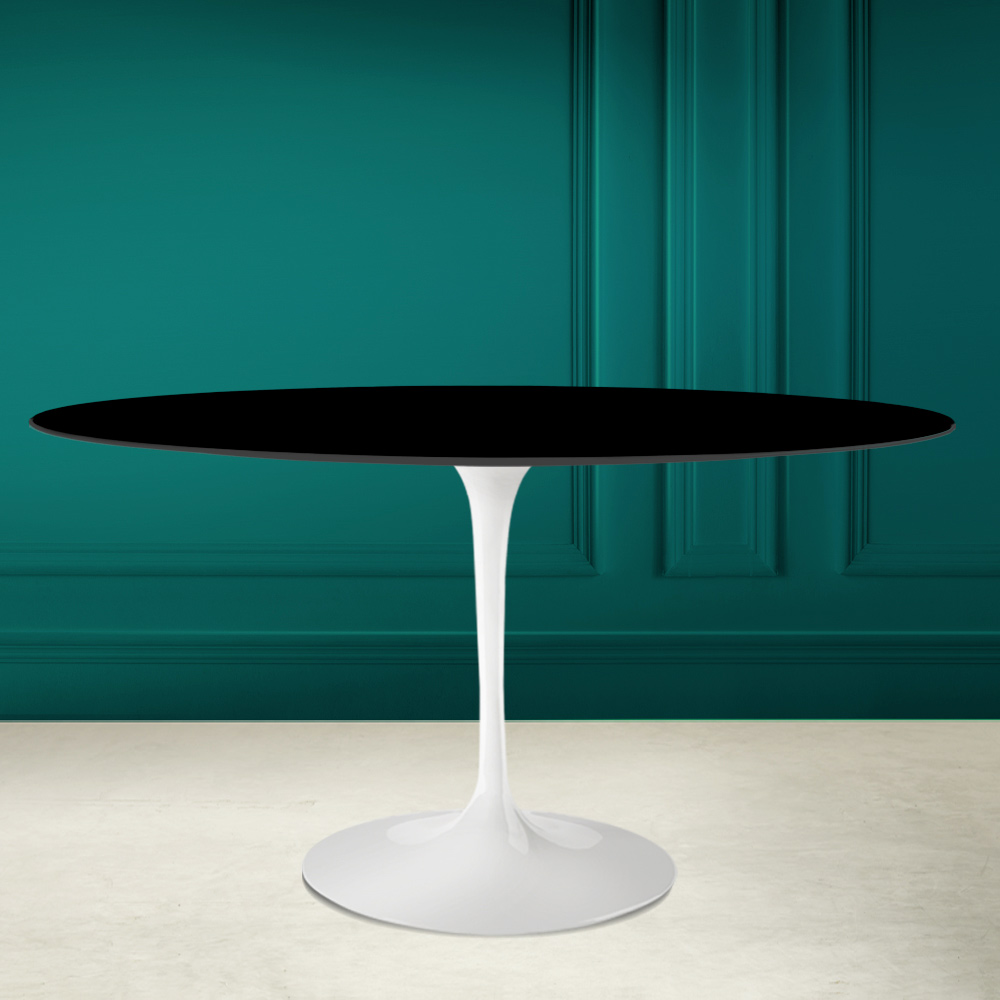 Made in Italy. Deze tafel heeft twee kenmerken die hem uniek maken in zijn soort: de ovale vorm en het absoluut zwarte keramiek.