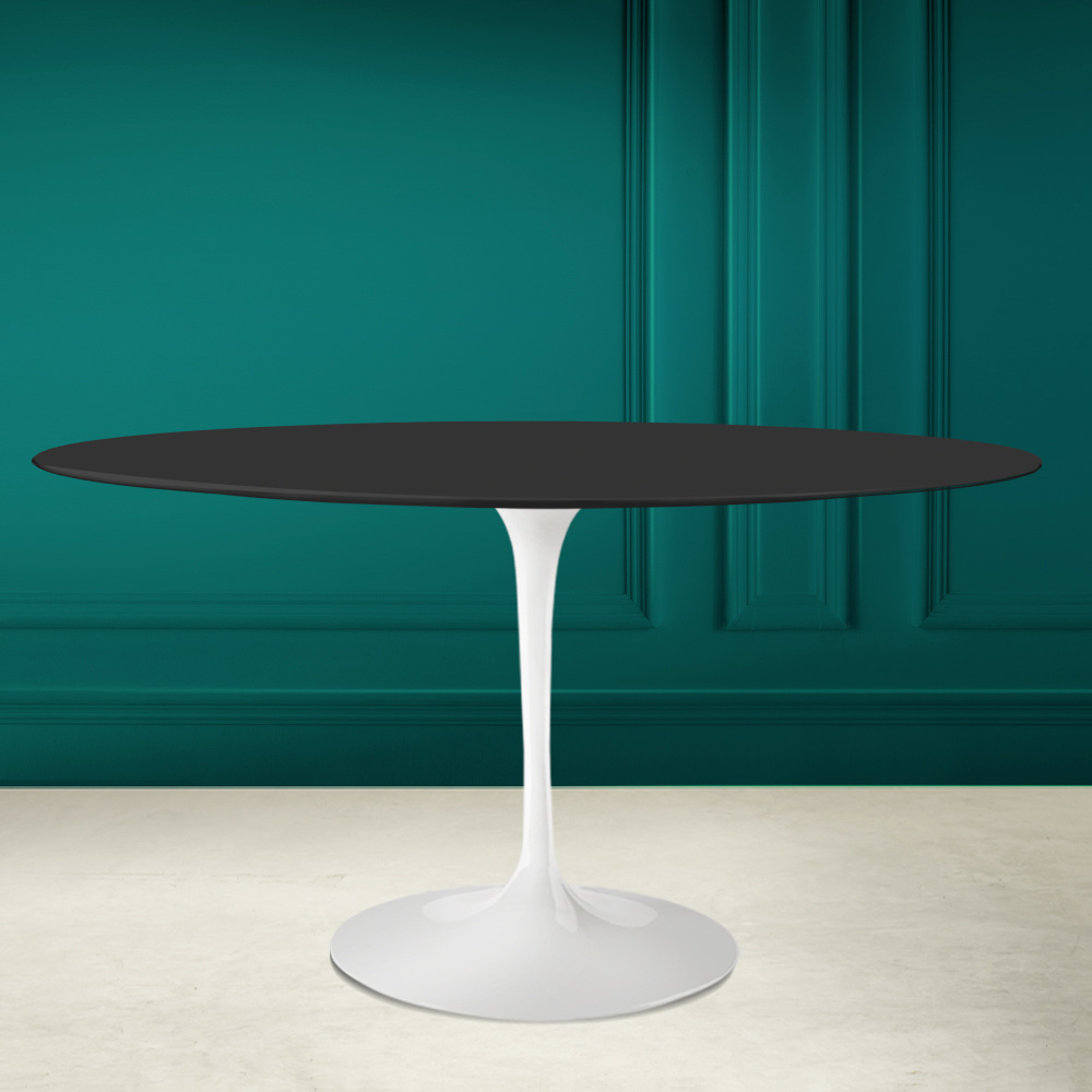 gepolijst aluminium. Deze tafel is het perfecte element om een originele touch te geven aan elke woonkamer en keuken dankzij de ovale vorm en Nero zacht keramiek. De