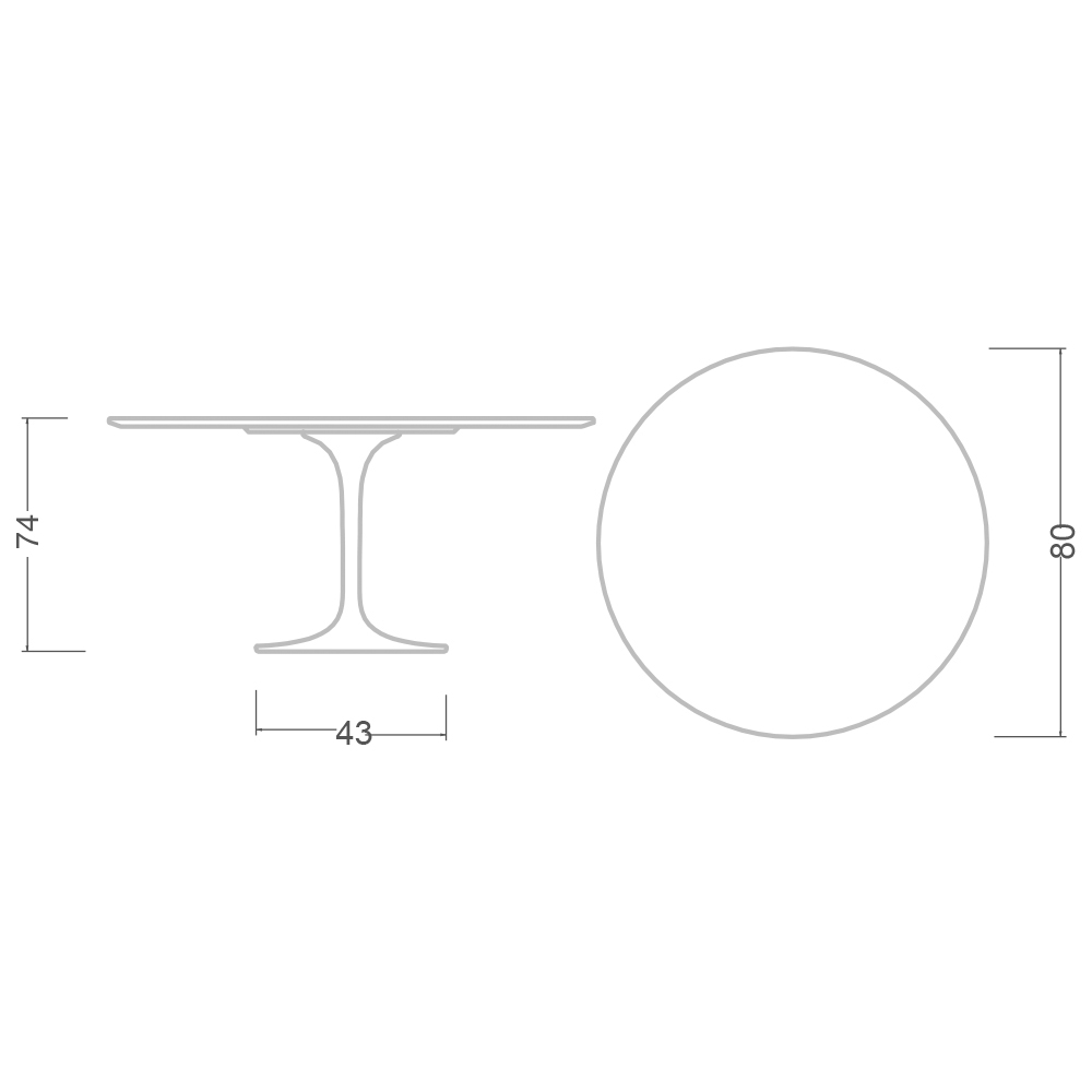 - Diameter tafelblad 80 x hoogte 74 cm;
