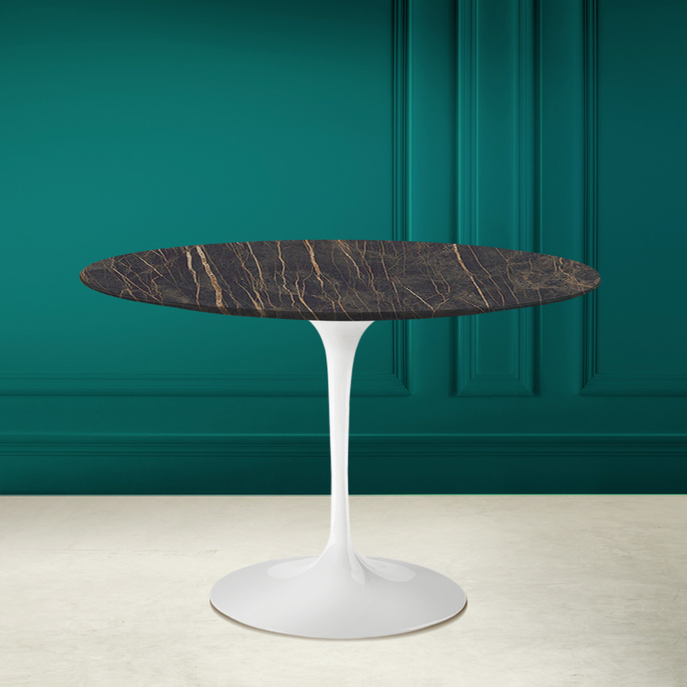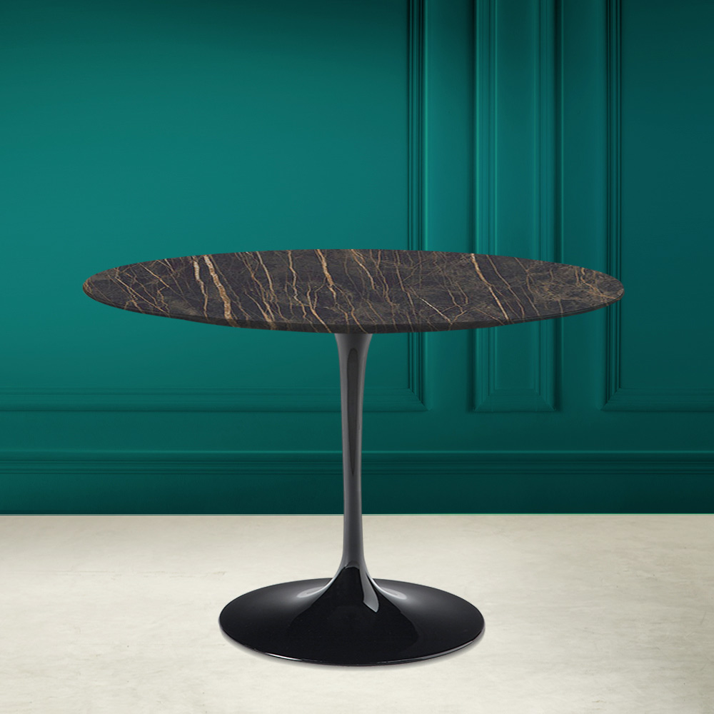Eettafel met rond blad in noir desire keramiek, Made in Italy