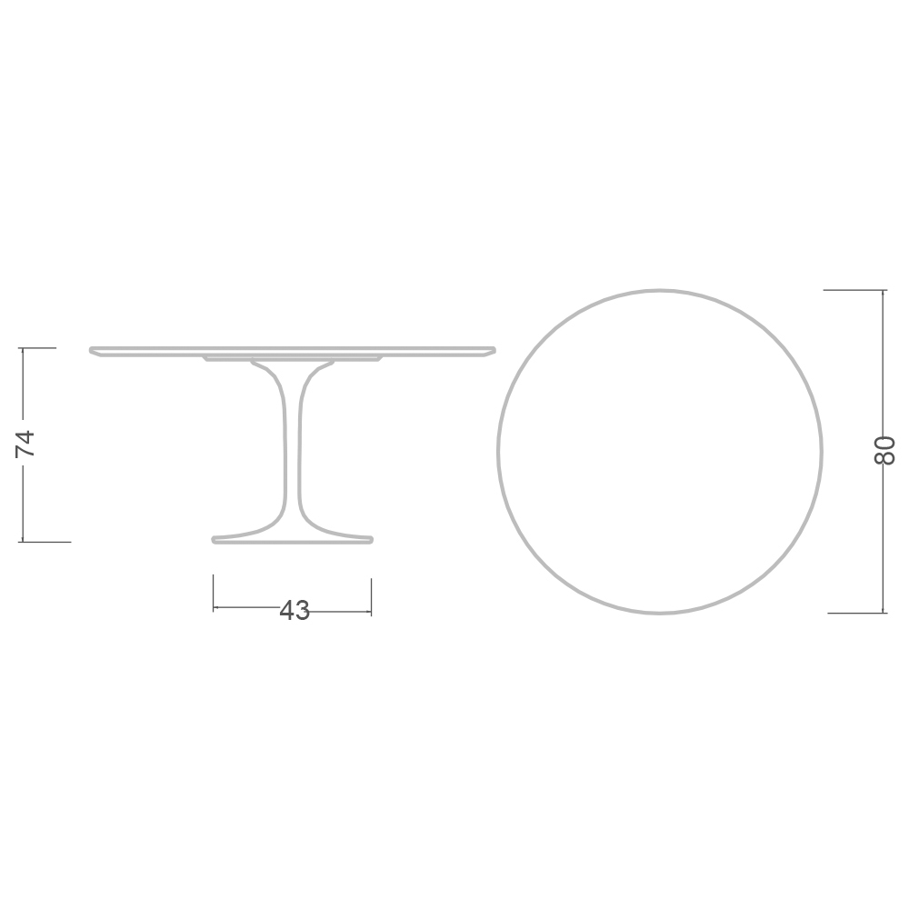 - Diameter tafelblad 80 x hoogte 74 cm;