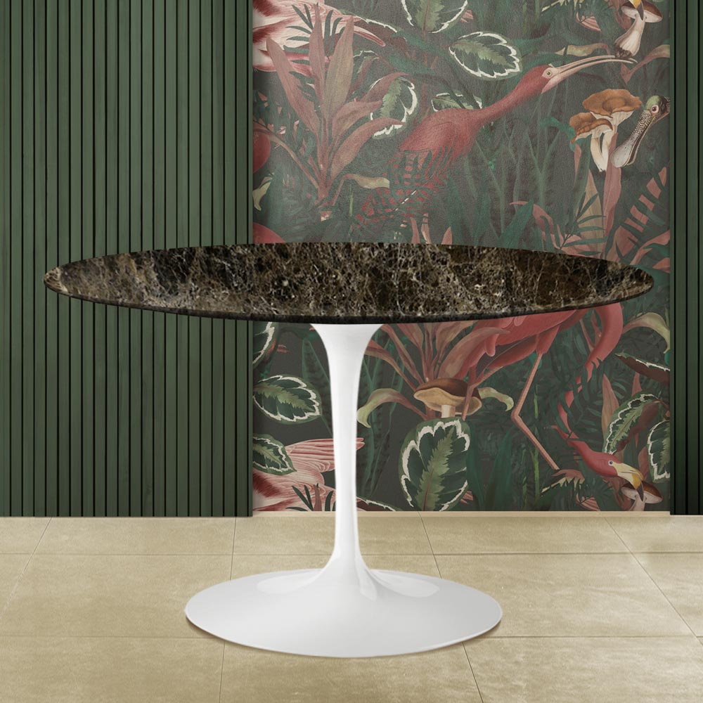 Ronde eettafel in donker emperador marmer en gepolijst aluminium Made in Italy