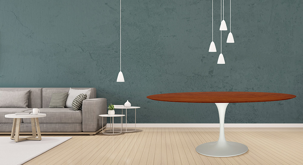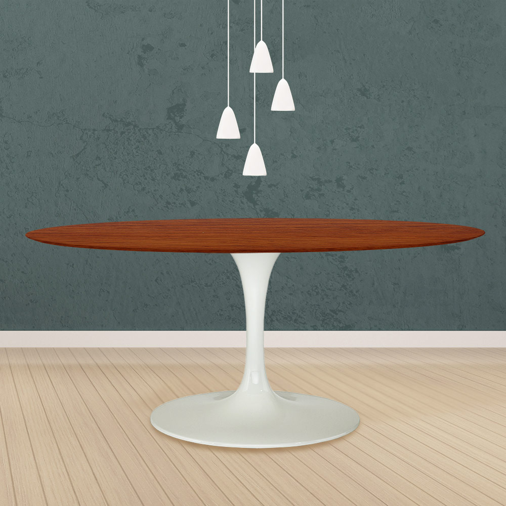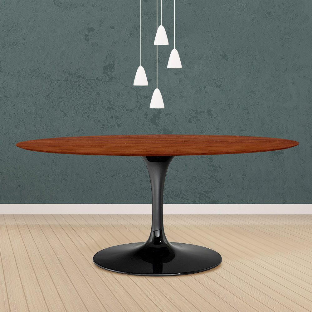 Eettafel ovaal in kersen gebeitst eiken en gepolijst aluminium onderstel Made in Italy