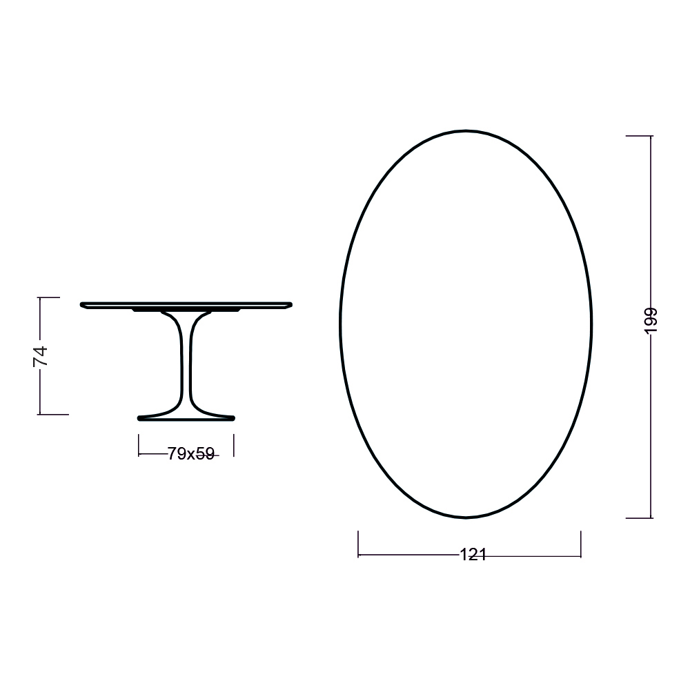 NB : het tafelonderstel is ook verkrijgbaar in mat en zwartgrijs. De afmetingen kunnen enkele cm afwijken.