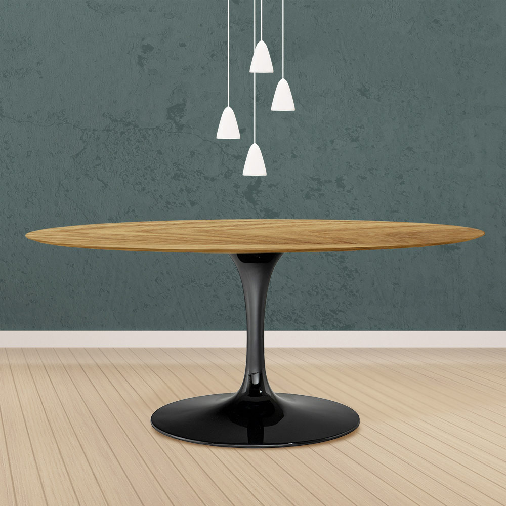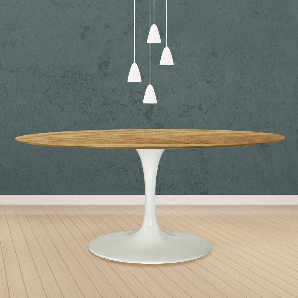 Eettafel ovaal in natuurlijk eiken en gepolijst aluminium onderstel Made in Italy