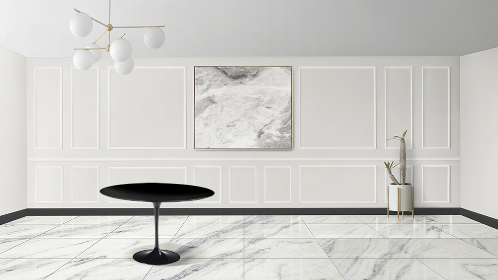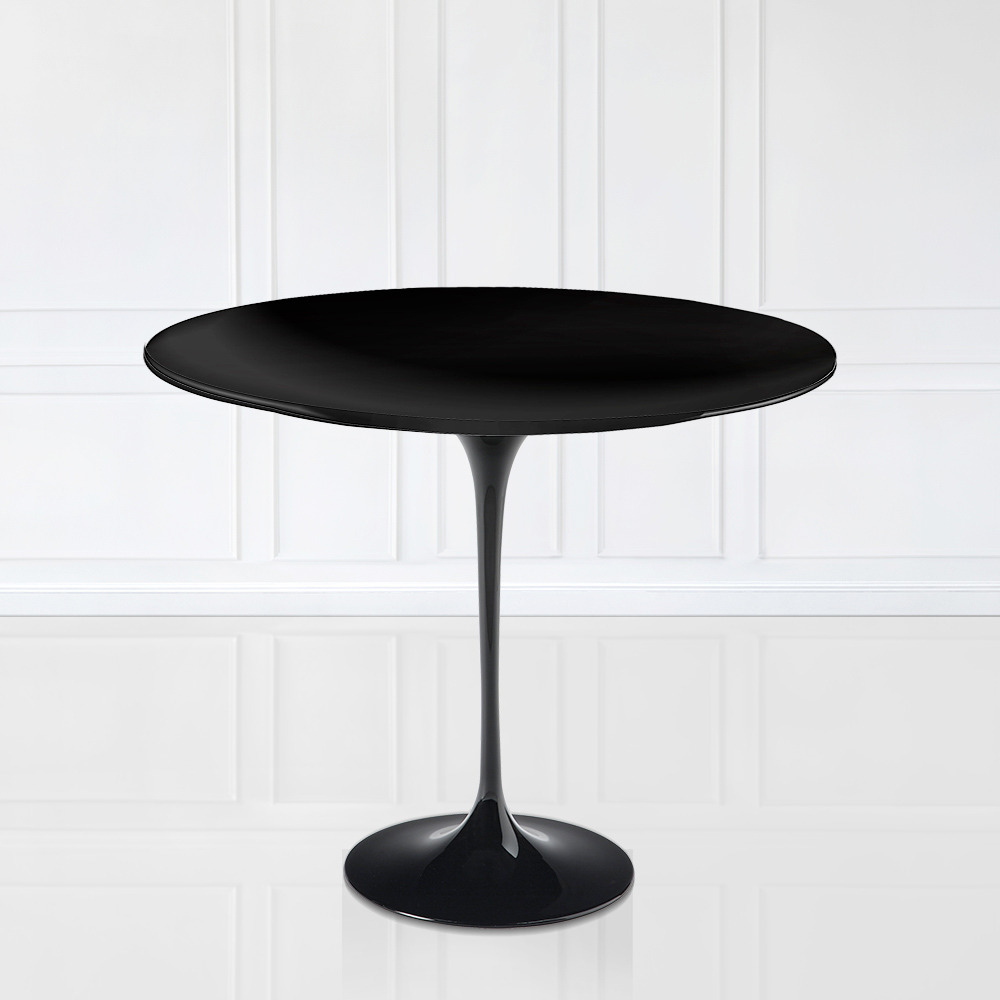 Eettafel geheel gemaakt in Italië met rond blad in zwart vloeibaar laminaat en voet in zwart gepolijst aluminium . Het verleidelijke en verfijnde ontwerp van dit element maakt het mogelijk om elke woonkamer en keuken met smaak en verfijning in te richten dankzij de ronde vorm die een vleugje originaliteit aan de kamer geeft en frisheid en lineariteit aan de stijl geeft. Het is essentieel om de eettafel zorgvuldig te kiezen, want hij staat op de warmste en meest gastvrije plek in huis en moet perfect passen in de omgeving: dankzij de veelzijdigheid van deze tafel kan dat overal. Dit meubelstuk is ideaal om elke kamer sober af te werken dankzij de eenvoudige en essentiële afwerkingen. Het blad in vloeibaar laminaat en het onderstel in gepolijst aluminium maken deze tafel geschikt en functioneel voor elke gelegenheid.