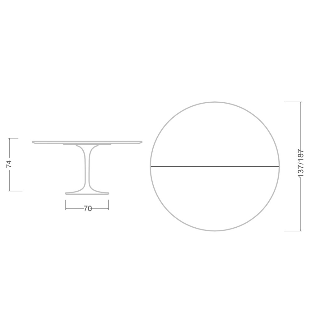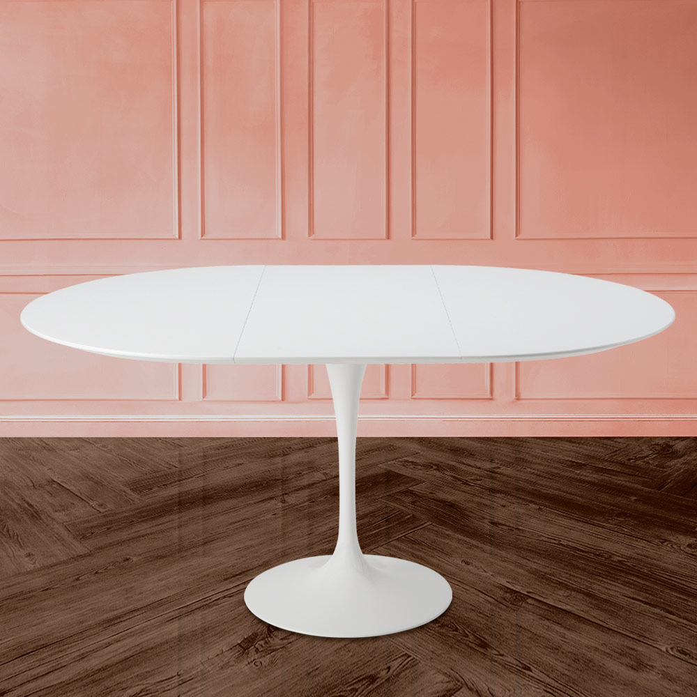 Uitschuifbare eettafel tot 187 cm met wit vloeibaar laminaat bovenblad en wit gepolijst aluminium onderstel geheel Made in Italy . Dit meubel beantwoordt aan de behoeften van functionaliteit en aanpasbaarheid van elke woon- en keukenomgeving. Verfijnd en met eenvoudige lijnen, kan het worden ingevoegd in alle meubels om elke kamer beter te voltooien. De mogelijkheid om uit te breiden maakt het een uniek element dat beantwoordt aan de behoefte om meer eters te hebben, ook dankzij de vorm van de basis die het plaatsen van veel stoelen bevordert. Deze tafel is het perfecte idee om iets origineels en elegants te hebben, maar tegelijkertijd bruikbaar voor alle gelegenheden en evenementen.