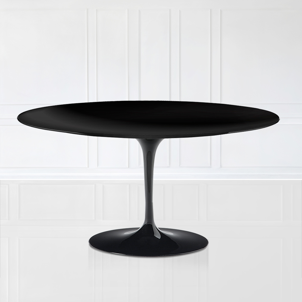 Eettafel volledig gemaakt in Italië met ovaal blad in zwart vloeibaar laminaat en onderstel in zwart gepolijst aluminium . Deze tafel past zich aan elk type gebruik en elk type ontwerp aan. De innovatieve ovale vorm is perfect voor meerdere diners en de vorm van het onderstel leent zich uitstekend voor het plaatsen van meerdere stoelen. Dankzij de eenvoudige en elegante afwerkingen en lijnen past hij in alle inrichtingsstijlen, van modern tot chic tot retro. Dit element is het winnende idee voor wie graag elke kamer in huis smaakvol en origineel wil inrichten.