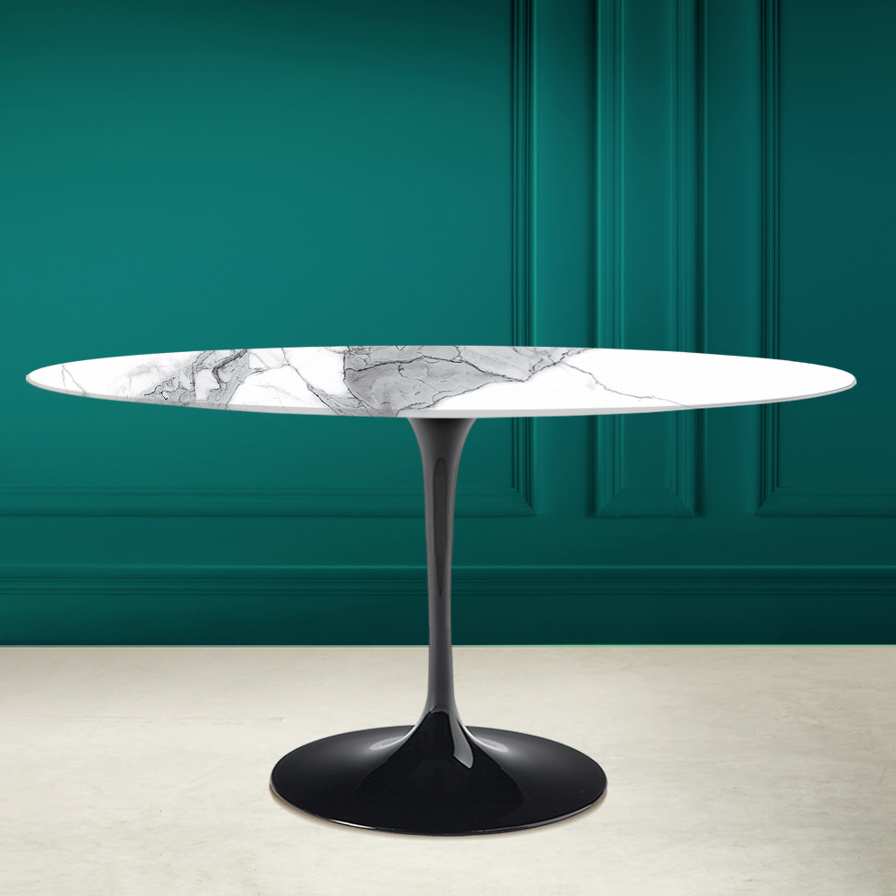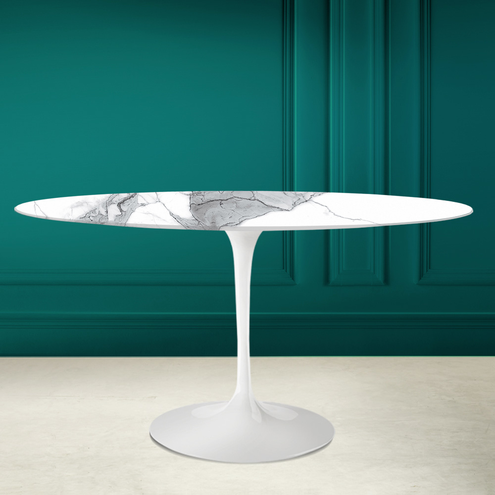 Eettafel met ovaal blad in statuario altissimo keramiek zeer hoogwaardig Made in Italy