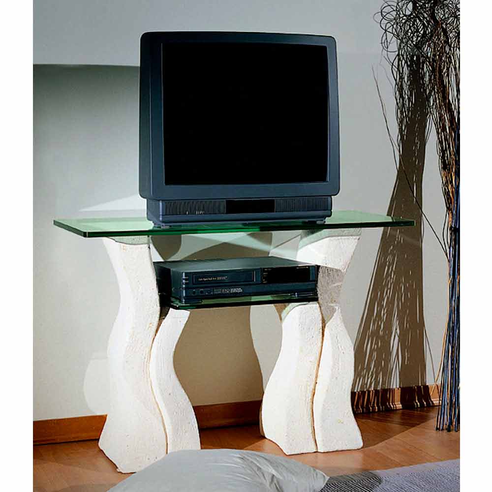 Portatv Gemaakt in Italië in Vicenza natuursteen en kristallen, de twee gebeeldhouwde bases worden gekenmerkt door de elegante en dynamische vorm van de golf en voltooid door de twee 15 mm dikke glazen bladen. De stenen worden behandeld met een impregneerbaar en milieuvriendelijk water voor eenvoudige reiniging.