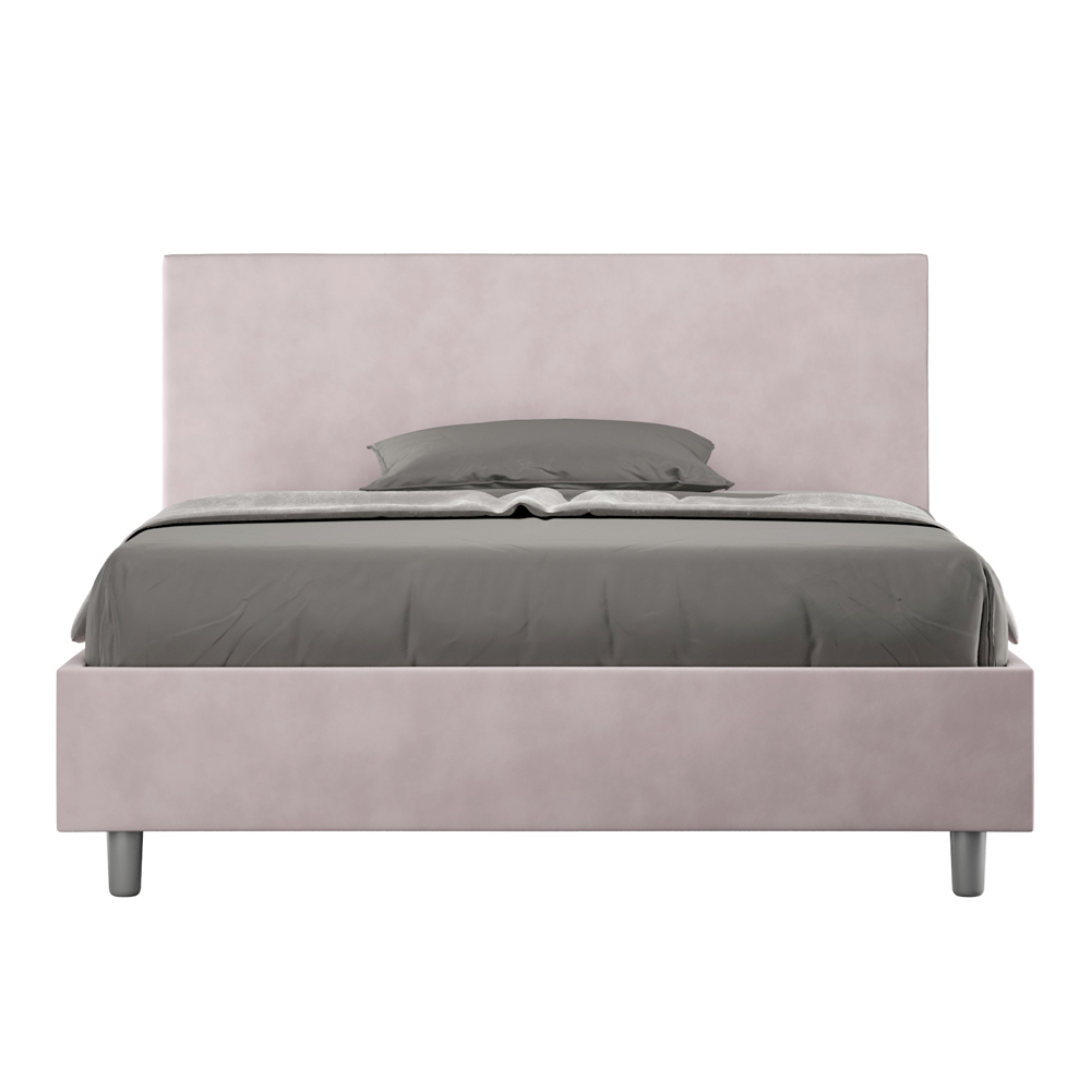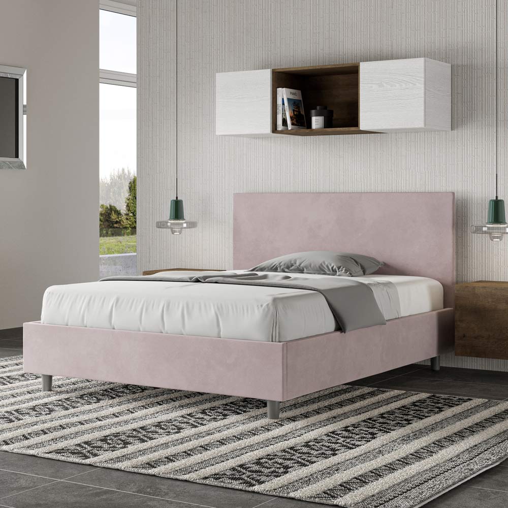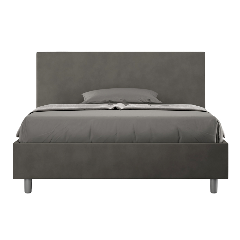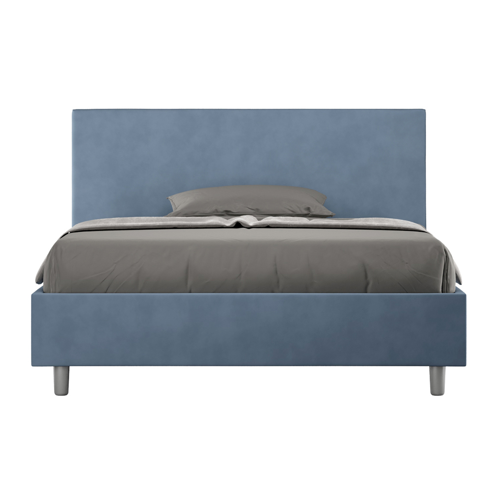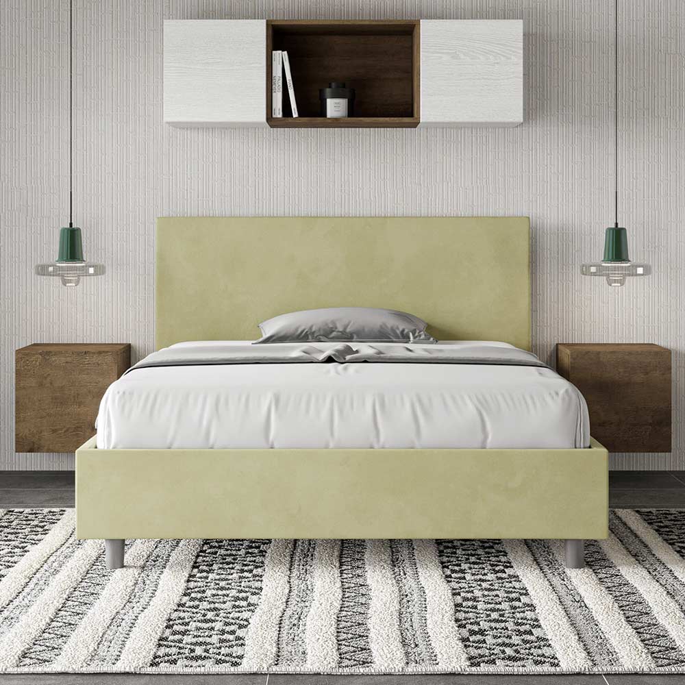 Frans bed 140x200 cm, gewatteerd en bekleed met microvezel, gemaakt in Italië.